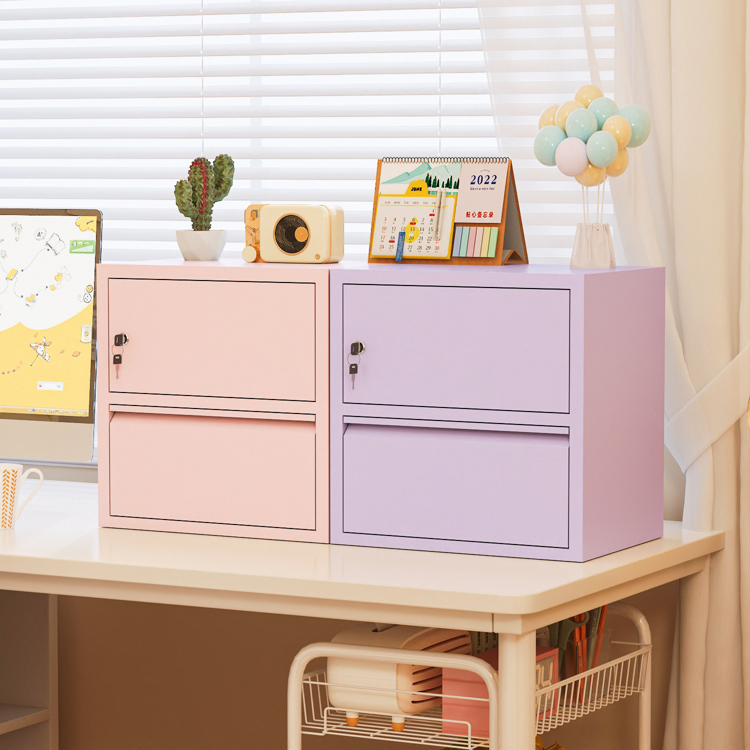 桌面密码箱带抽信盘收纳密码锁A4纸文件收纳架财务公章收纳铁皮柜