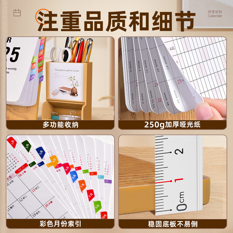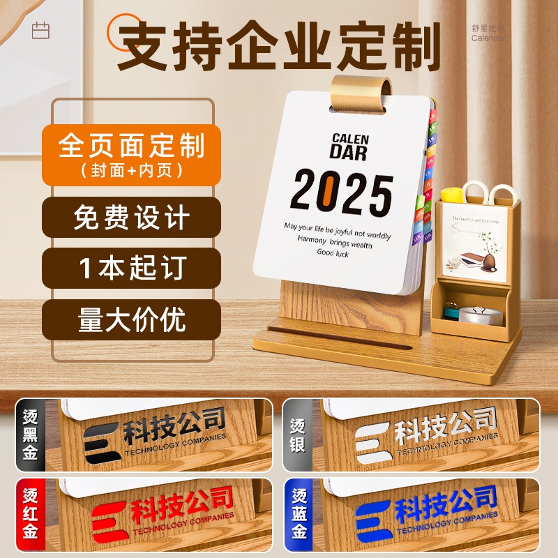 木质台历2026年新款日历定制创意桌面摆件马年企业logo定做带笔筒办公月历商务年历订制自律打卡计划本小台历