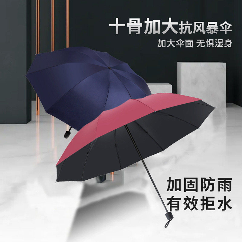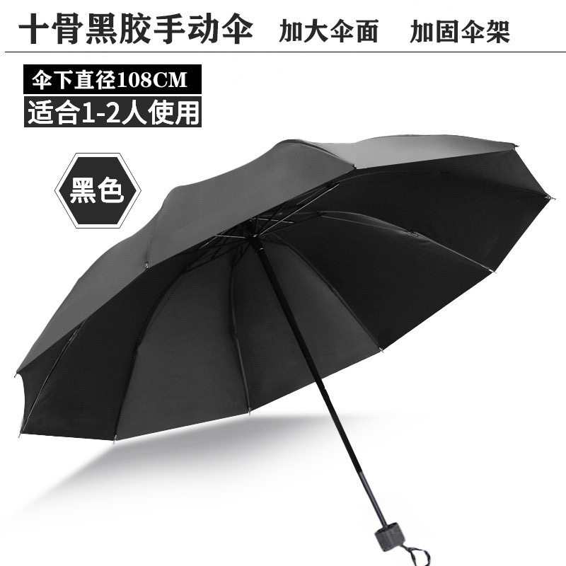 十骨雨伞手动加固三折晴雨男女遮阳折叠加大暴雨防风双人