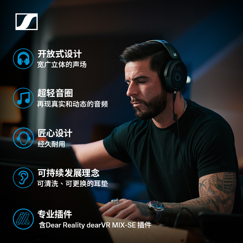 【官方直供】森海塞尔HD490 PRO 有线头戴耳机开放式监听耳机plus