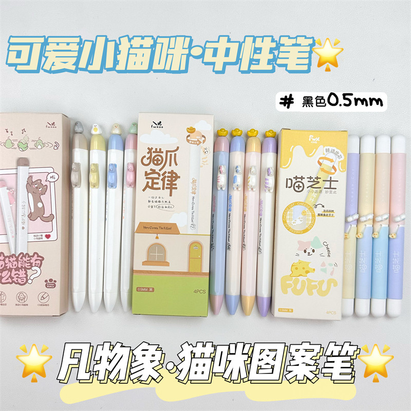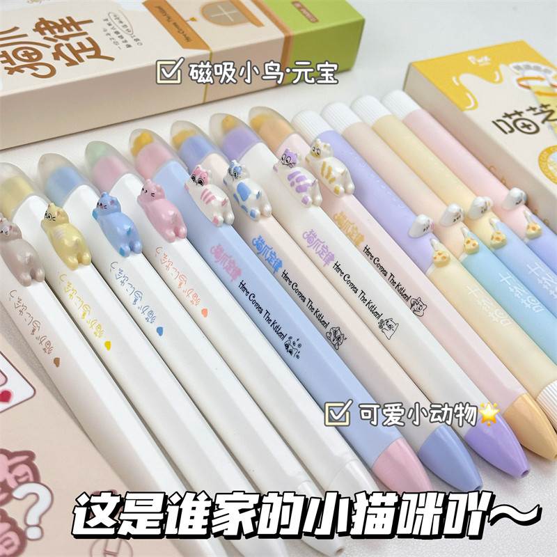 猫猫家族!凡物象磁吸小鸟中性笔高颜值ins风学生速干刷题笔黑笔