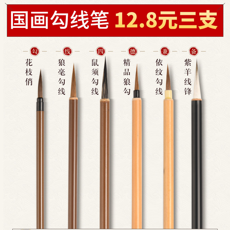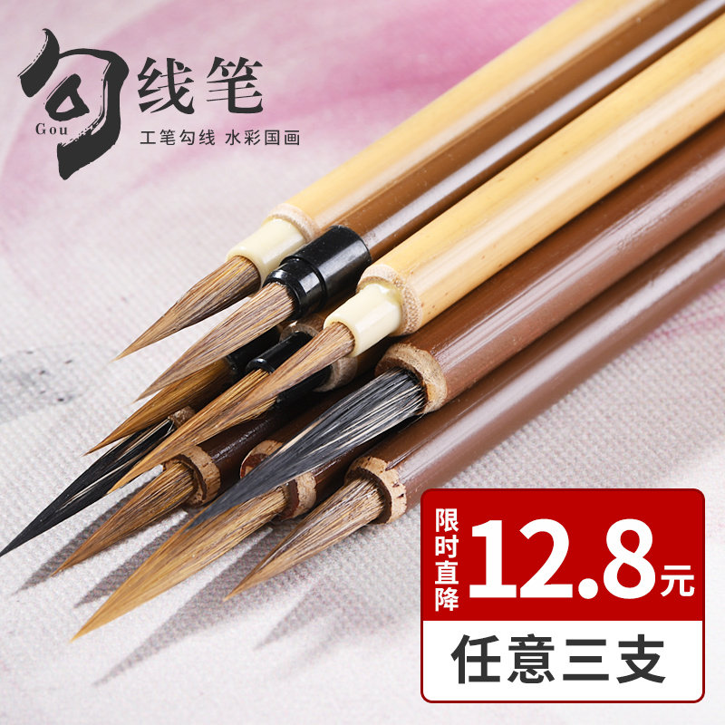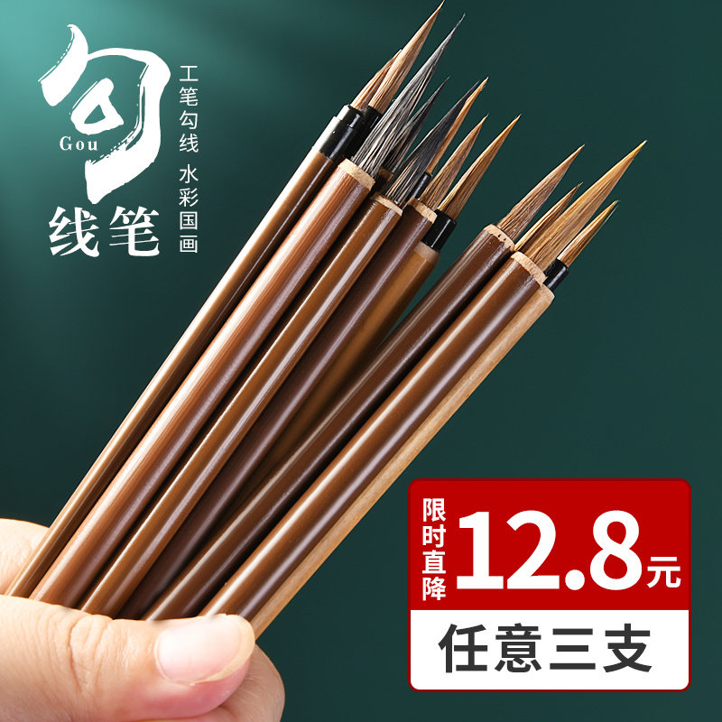 国画勾线笔专用毛笔狼毫勾线笔特细小号工笔画花枝俏叶筋笔瘦金体笔专用专业级花鸟描边水彩水粉极细中衣纹笔