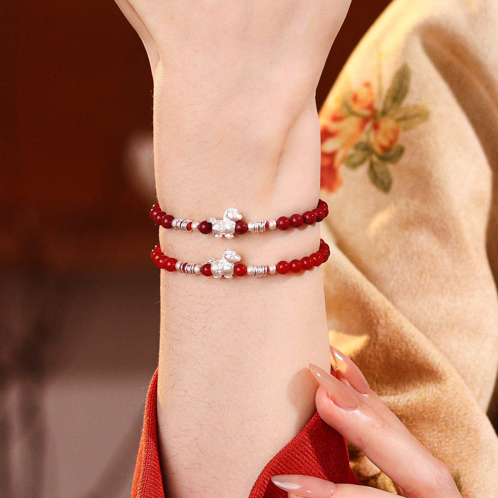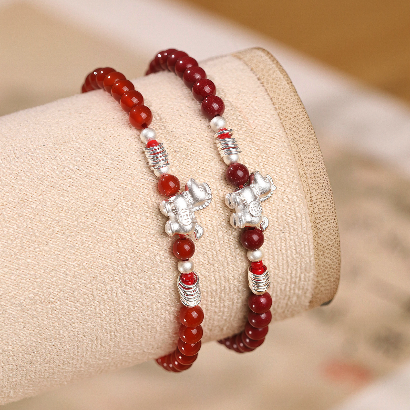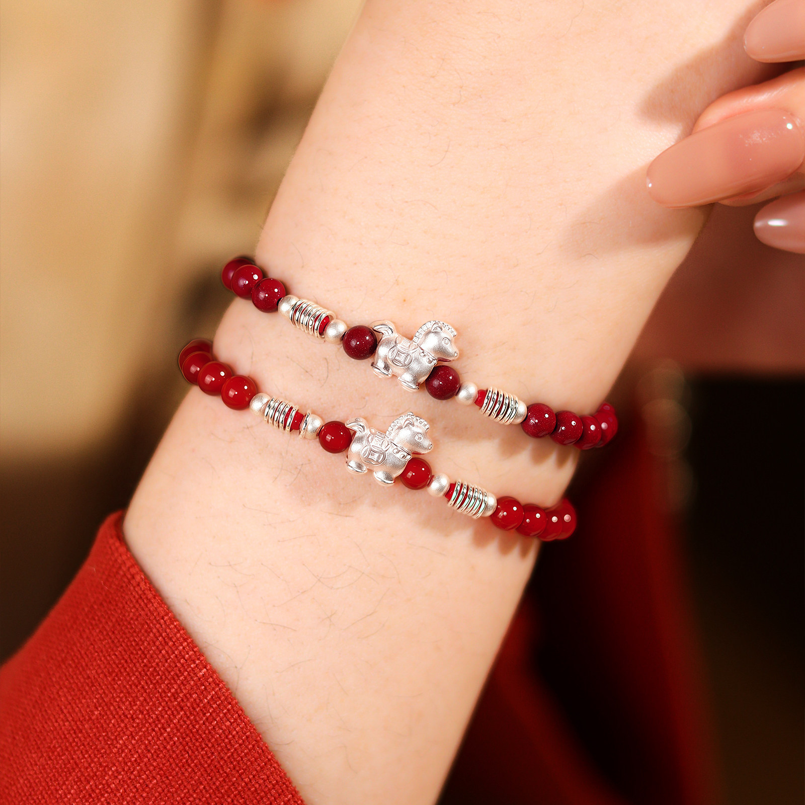 驮财红玛瑙本命年朱砂手串正品足银999马年手链轻奢小众生肖佩戴