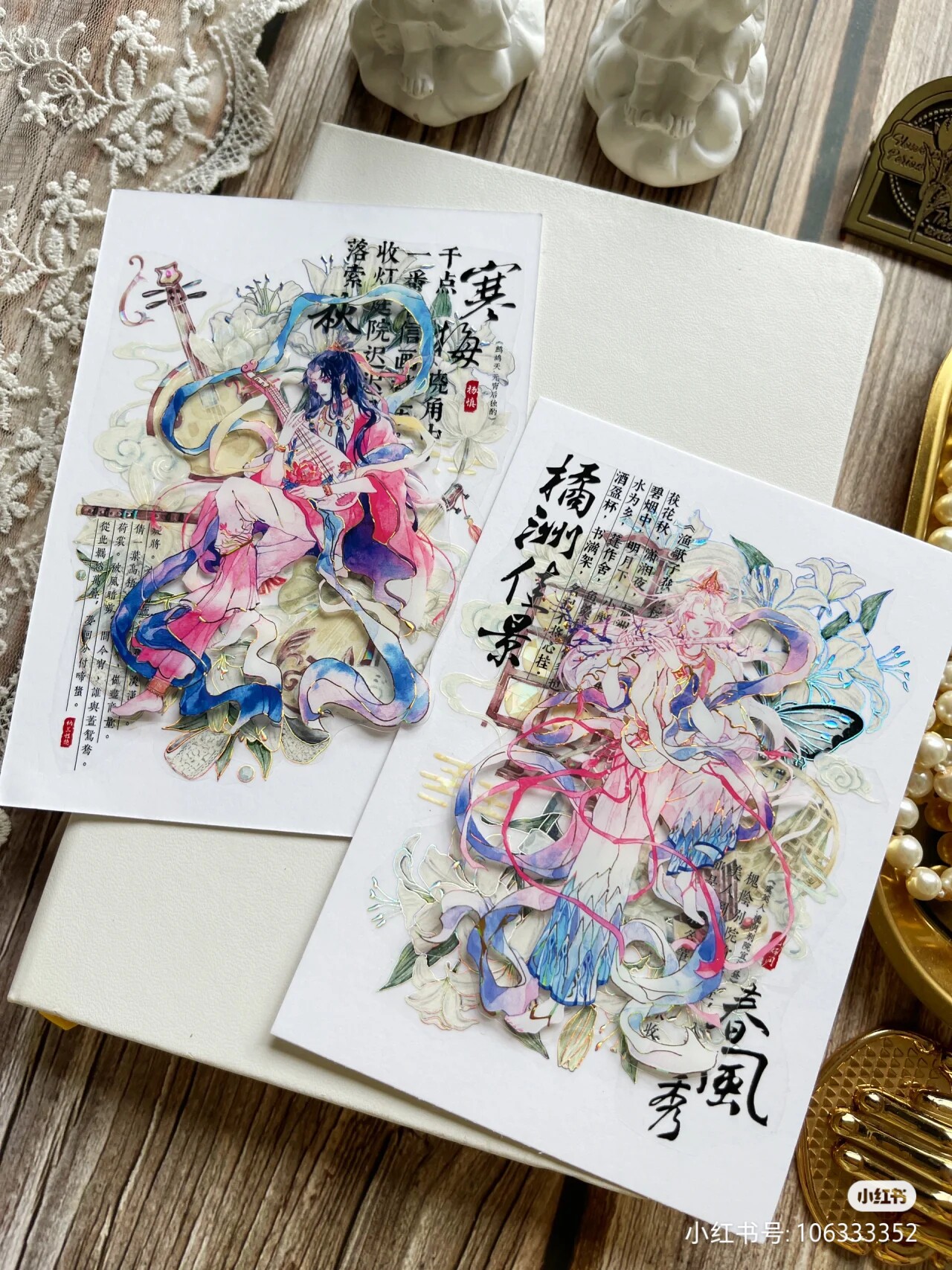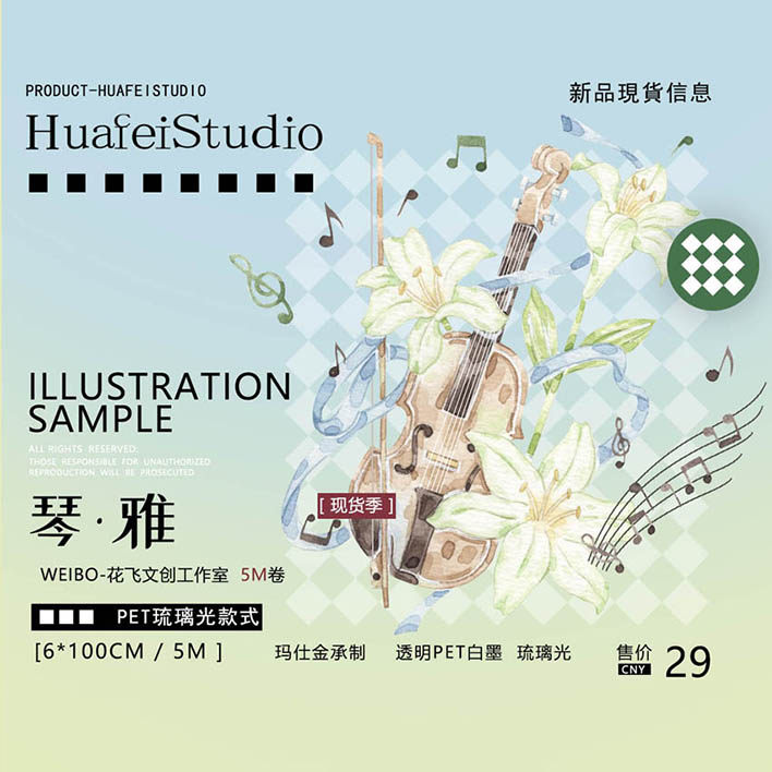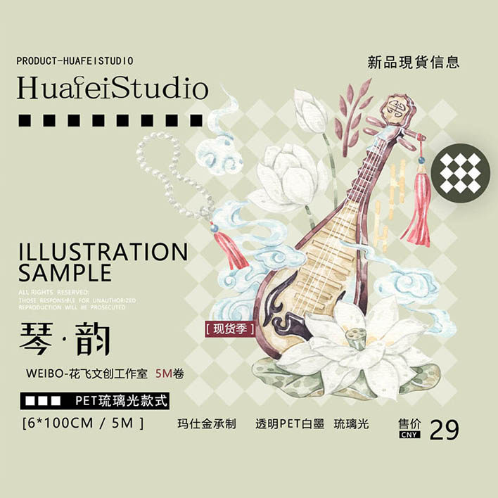 花飞文创 琴雅琴韵 古风现代乐器 国风 和纸胶带原创手帐 pet造景