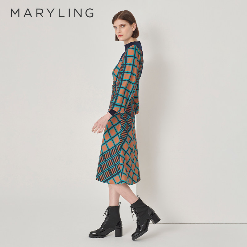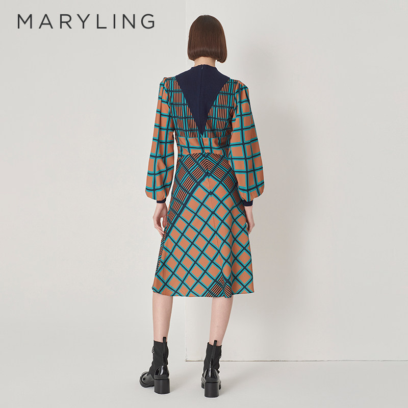 MARYLING玛俪琳【艺术魔方】印花鱼尾连衣裙A1DHW62920