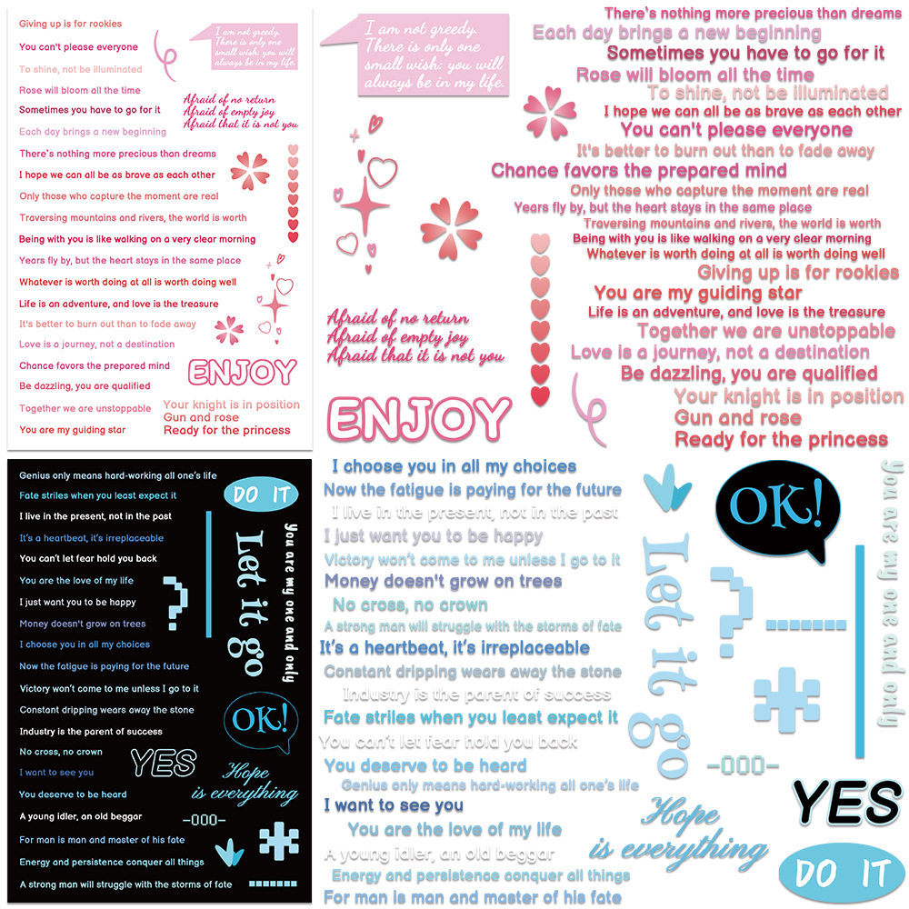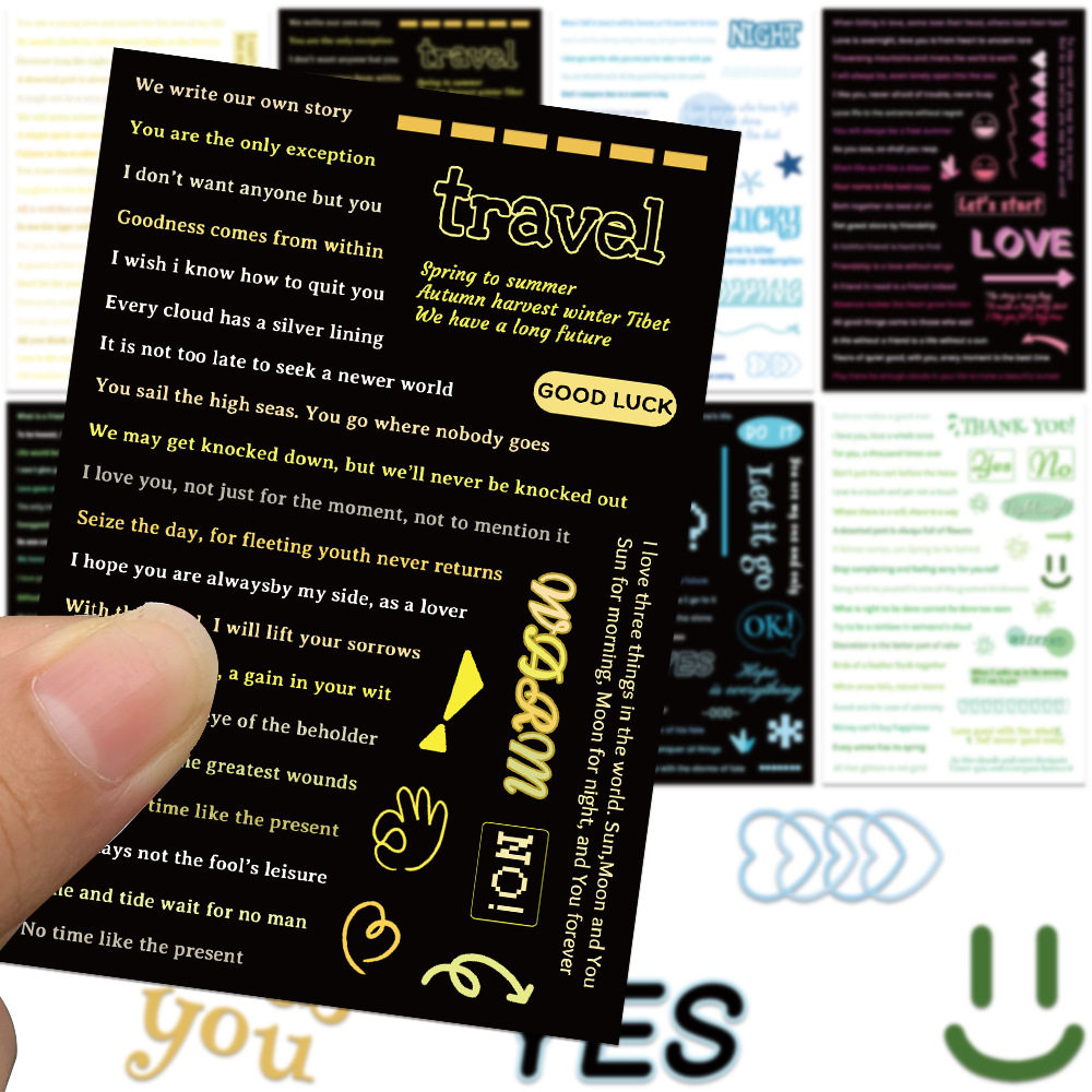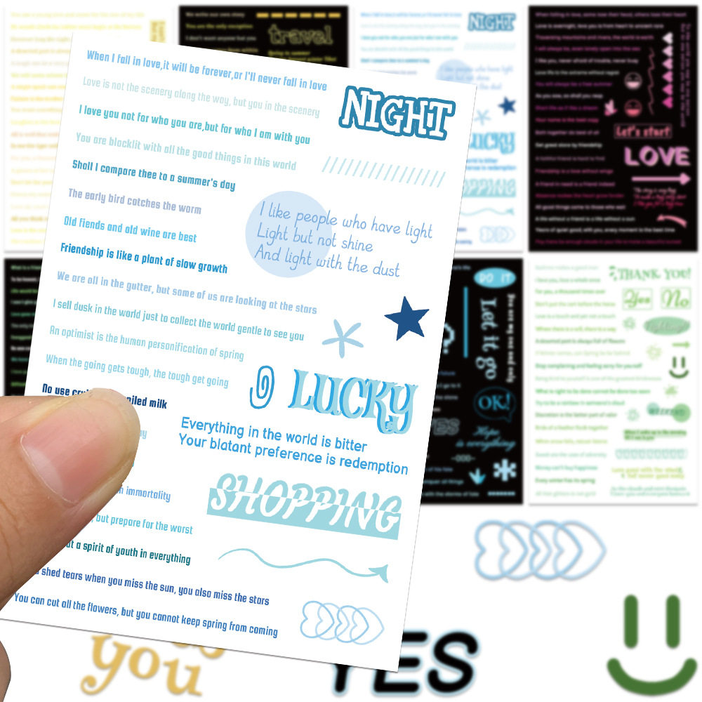16张ins风彩绘英文素材拼图贴纸甜酷文字高颜值小清新diy手账贴画