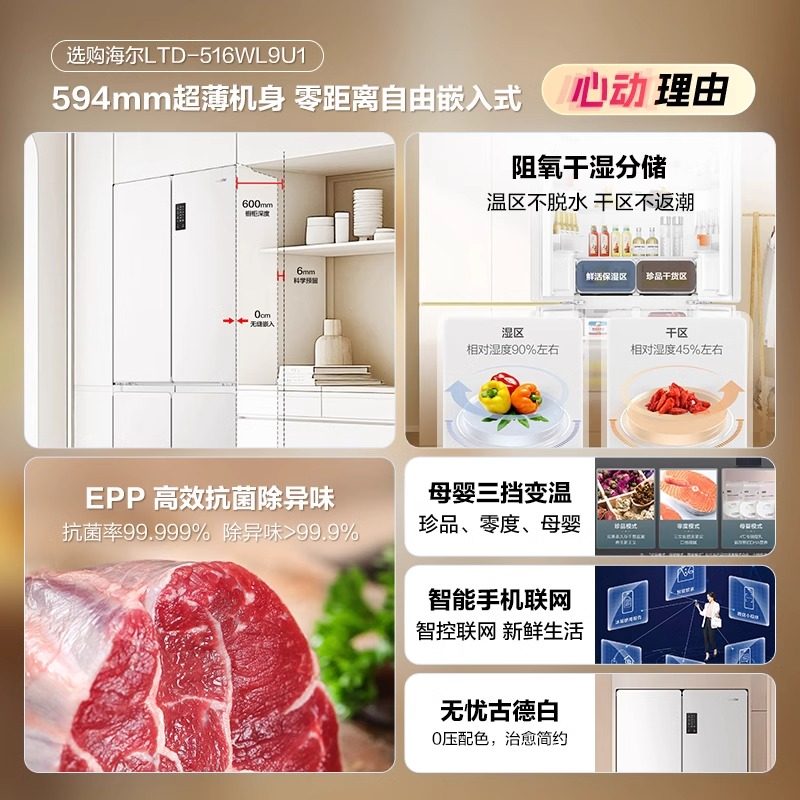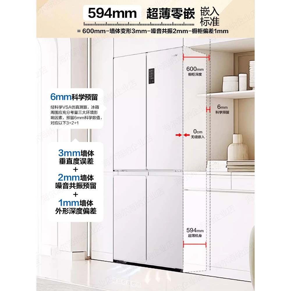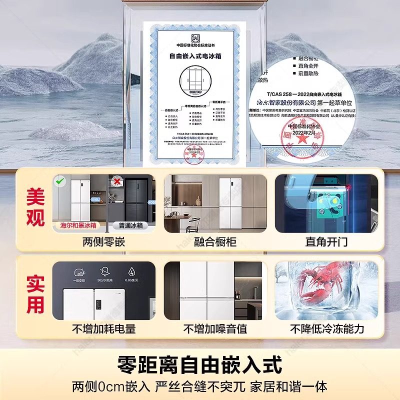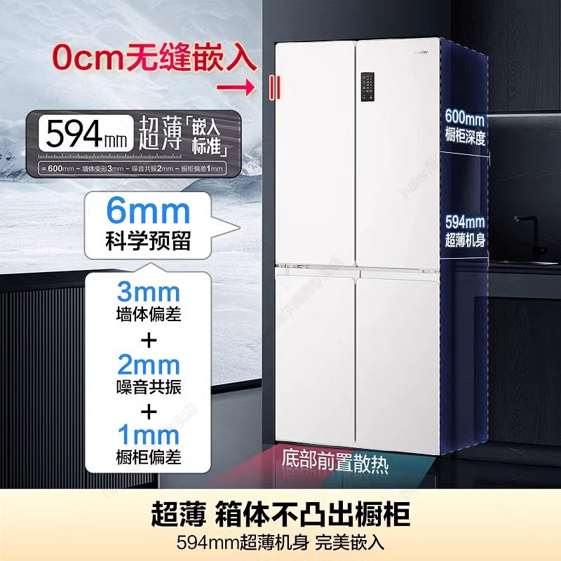 超薄海尔冰箱490升白色零嵌入式十字Leader516一级能效家用旗舰