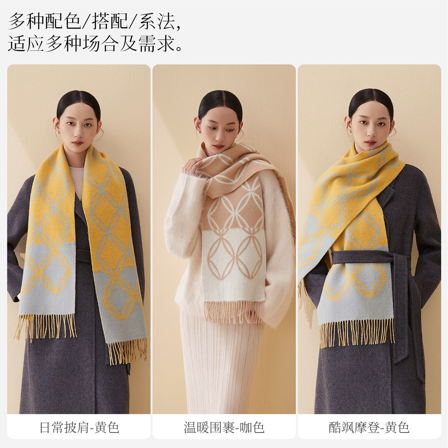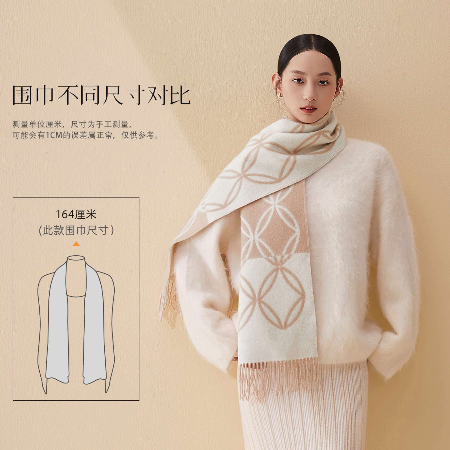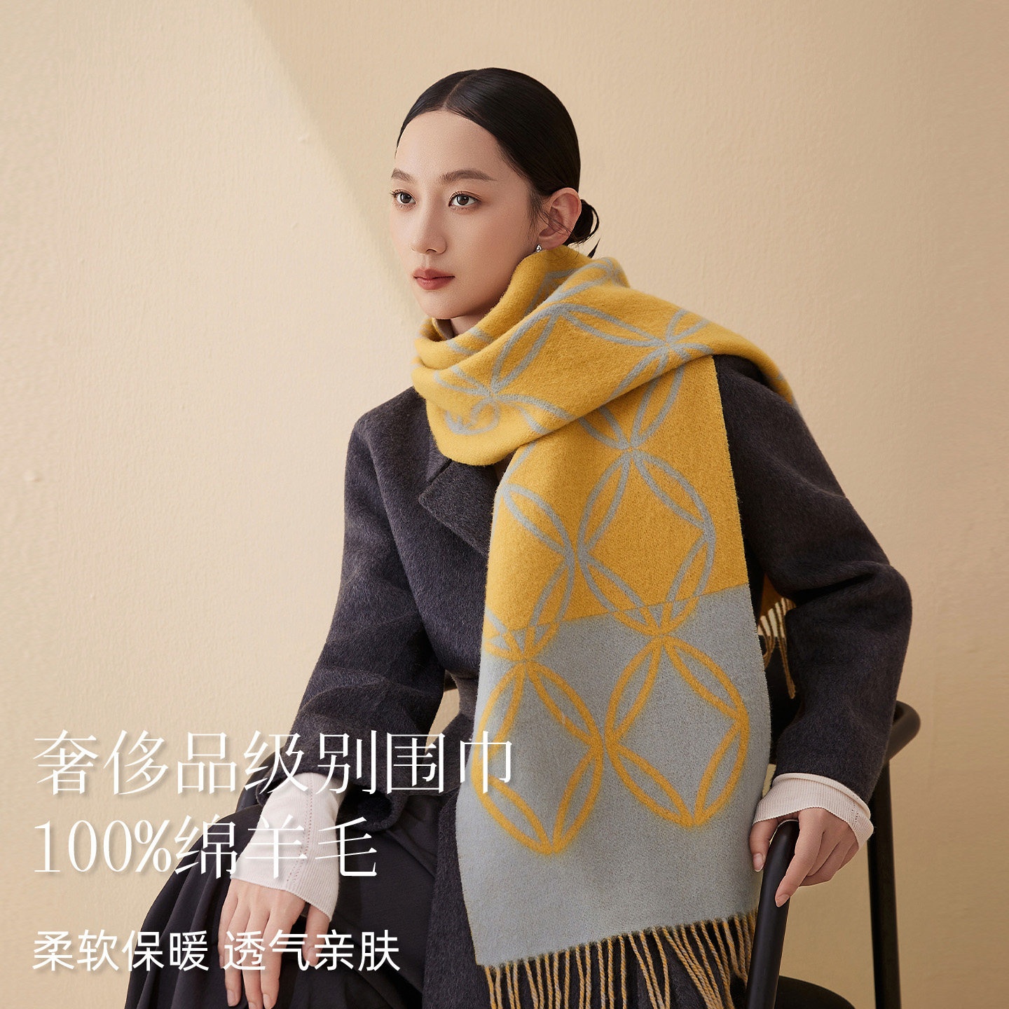 万事利26新品100%绵羊毛围巾百搭围脖披肩女生日礼物礼盒装小福贵