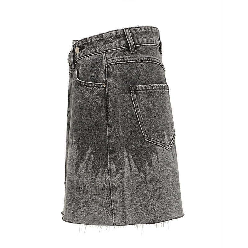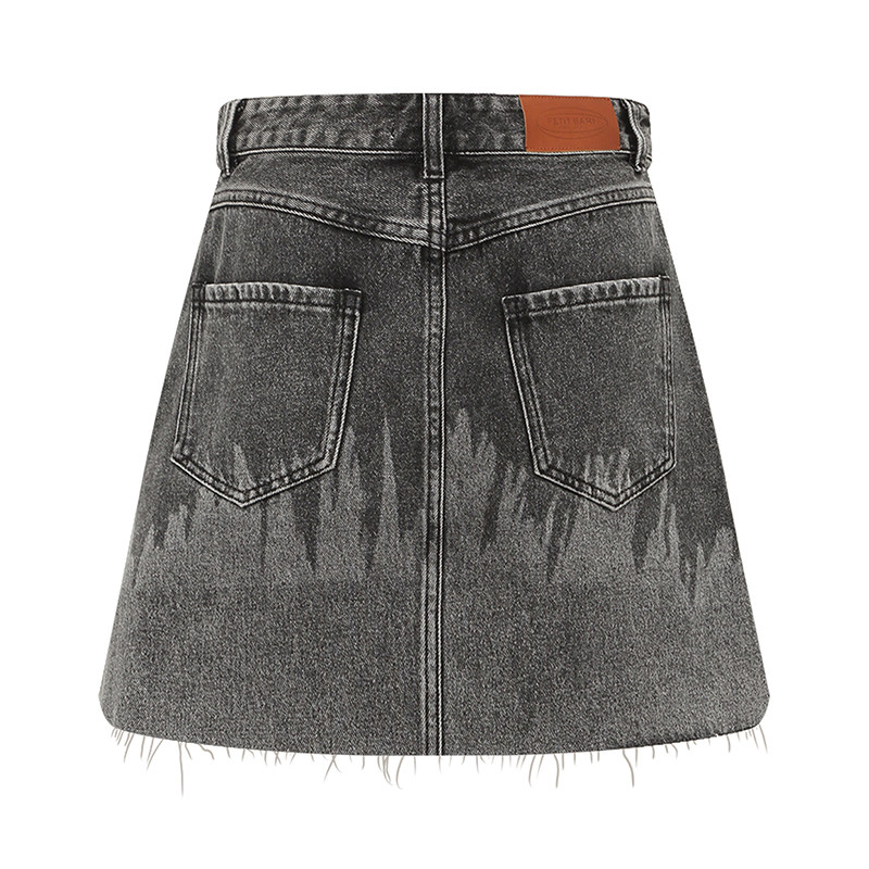 Petit Bari渐变色牛仔半身裙女 包臀细流苏辣妹风纯棉显瘦短裙 夏