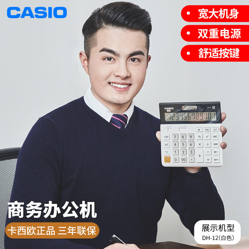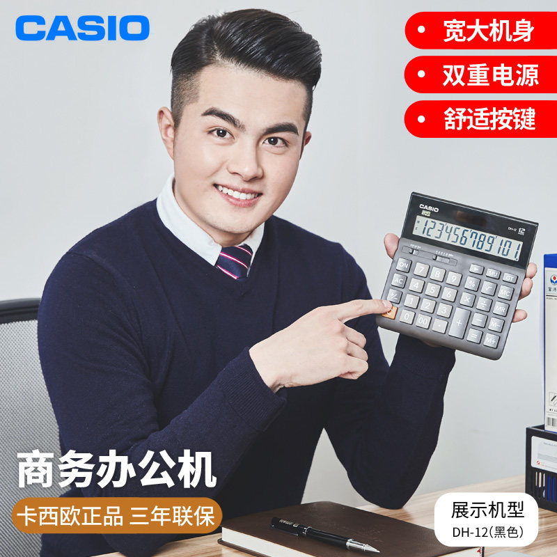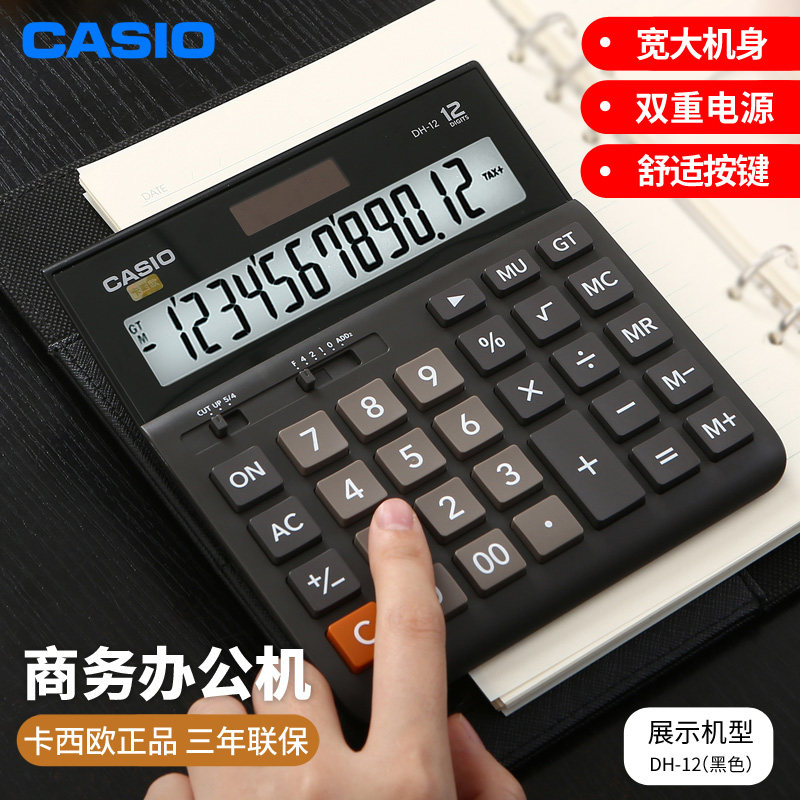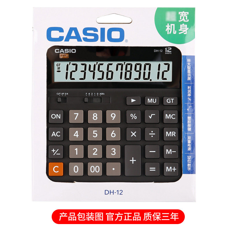 Casio/卡西欧 MH/DH-12 宽屏计算器 日常商务太阳能计算机 财务会计超市前台办公大屏幕大按键双重电源计算器