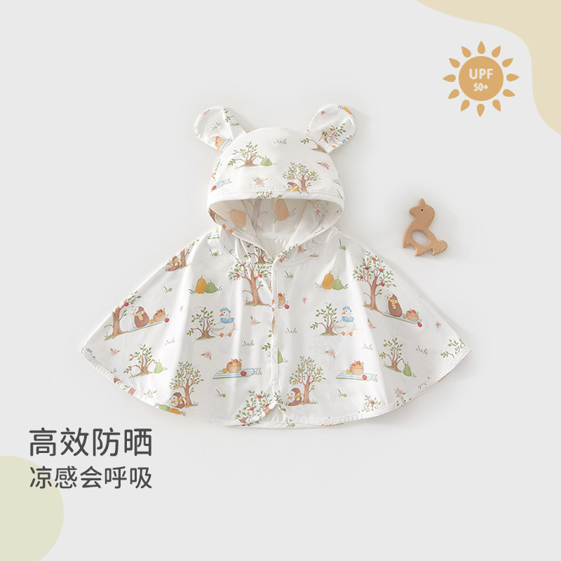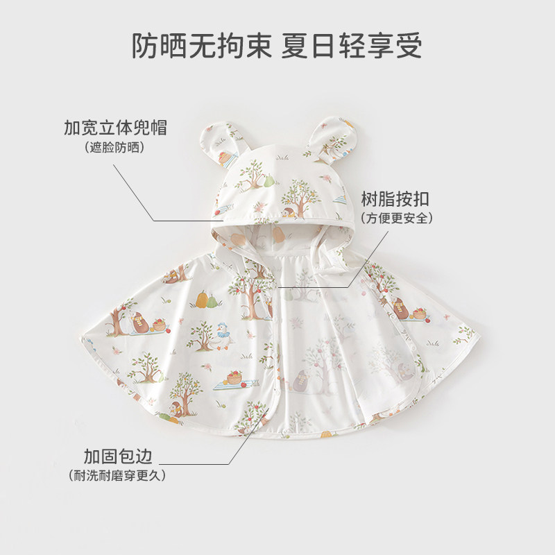 婧麒宝宝防晒衣夏季婴幼儿防晒斗篷薄款披风清凉防紫外线连帽外套