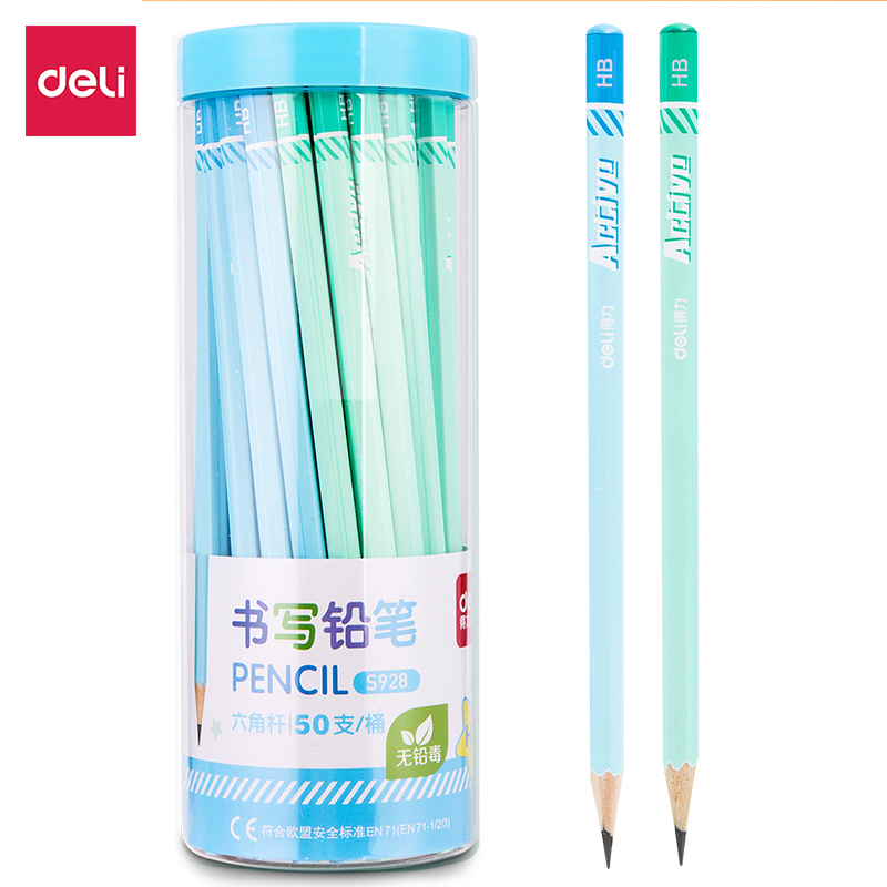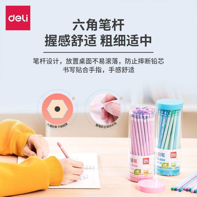 得力书写铅笔六角笔杆桶装hb一二年级套装2b铅芯儿童学生专用铅笔