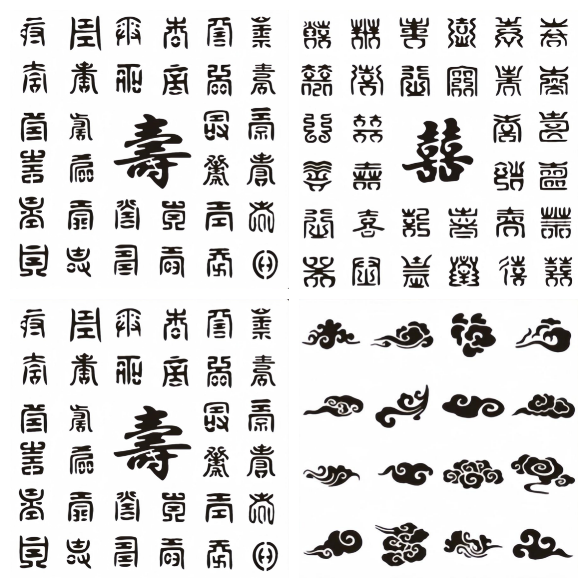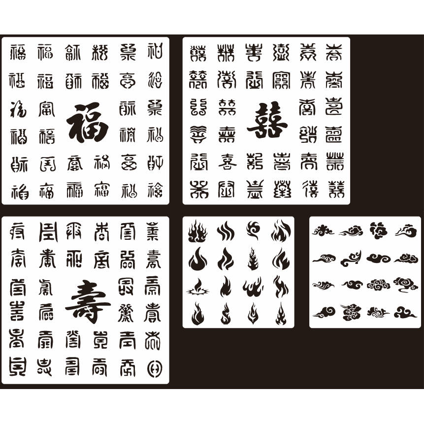 百福图福字创意镂空福字多种字体手抄报模板绘画涂鸦手账装模板尺