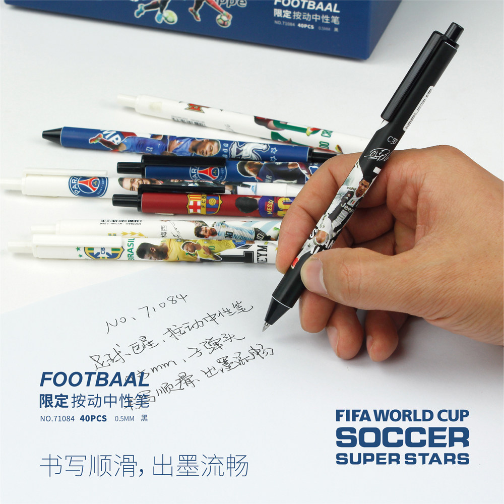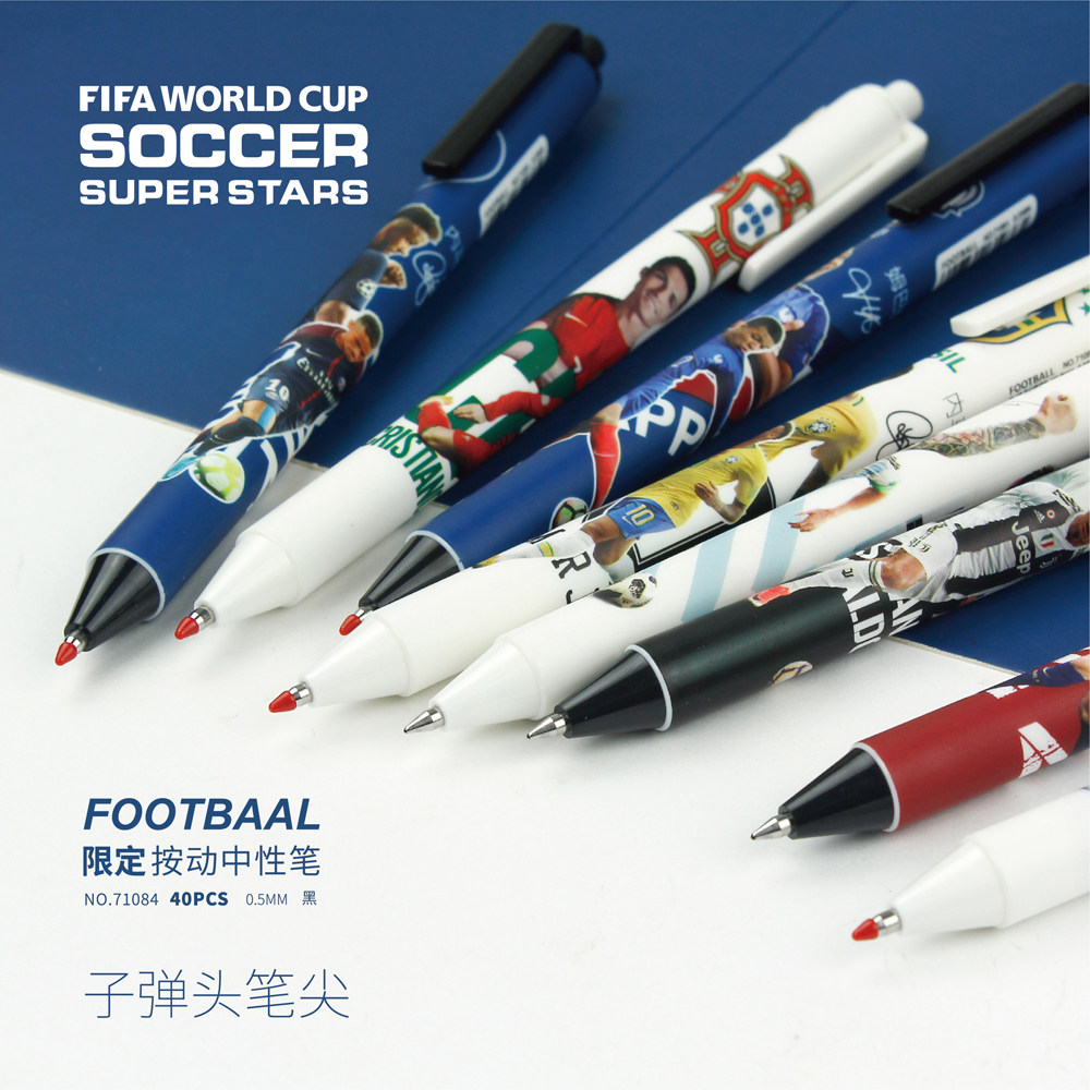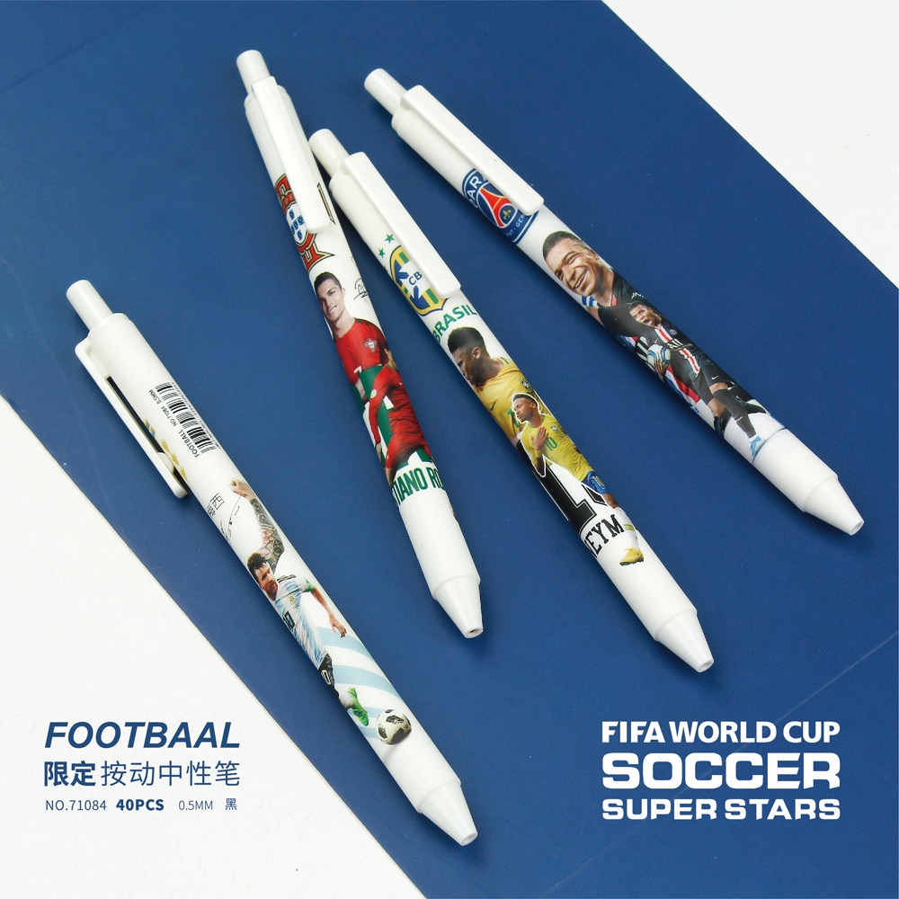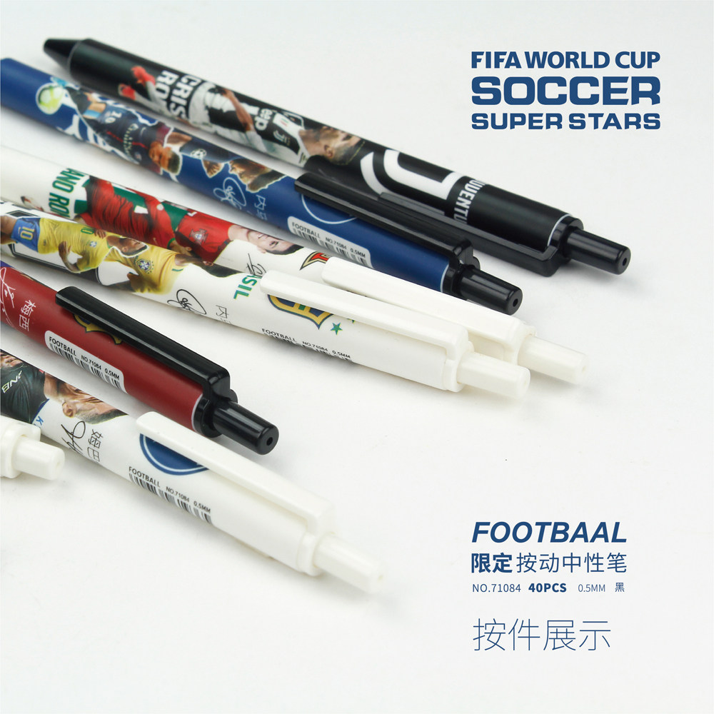 世界杯足球巨星限定按动中性笔0.5mm黑色梅西罗内马尔姆巴佩71084