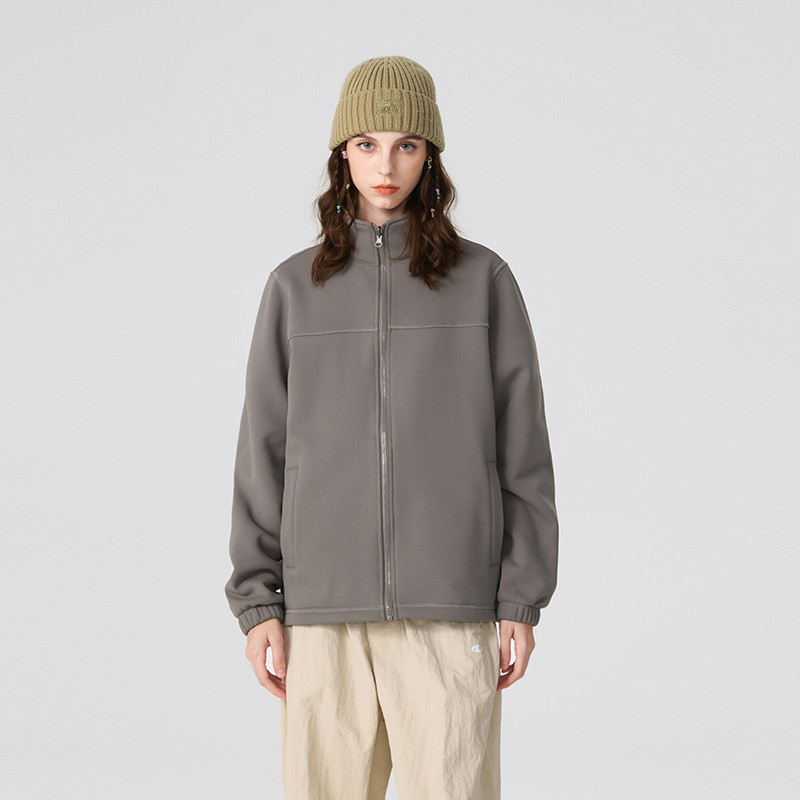 WX真维斯秋冬季简约重磅立领摇粒绒保暖夹克外套上衣男女同款绒衫