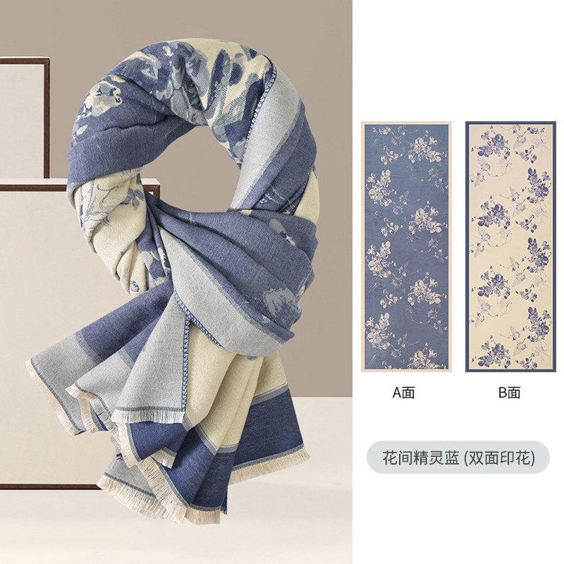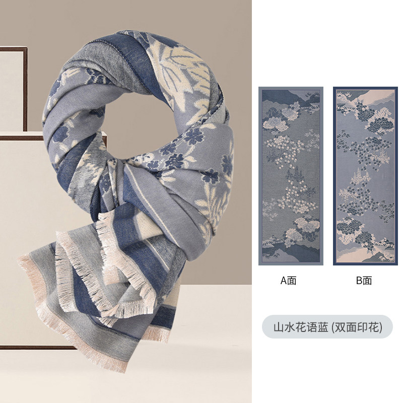 空调房高级蓝色系御寒国潮气质围巾女款2025新款夏双面大披肩外搭