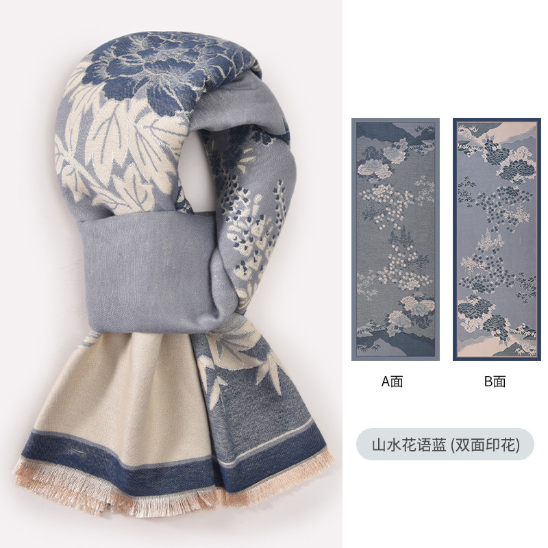 上海故事2025秋冬新款围巾女绵羊毛刺绣加厚保暖披肩女送长辈礼盒