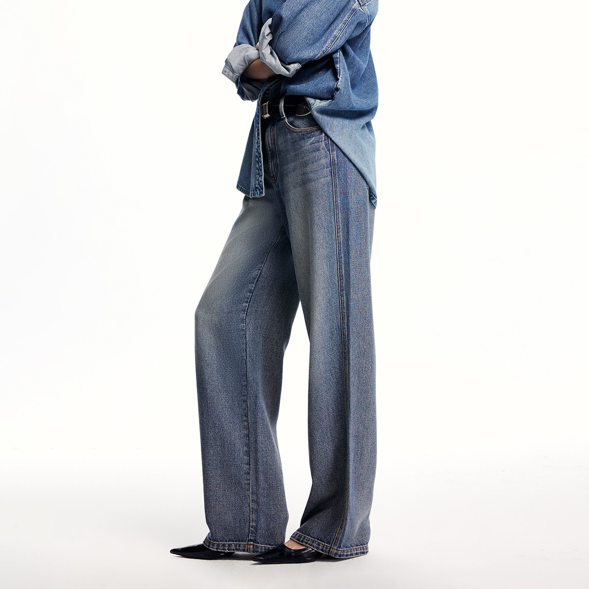 森柔牛仔|商场同款森马牛仔裤女翻边长裤2025秋季新款宽松阔腿裤