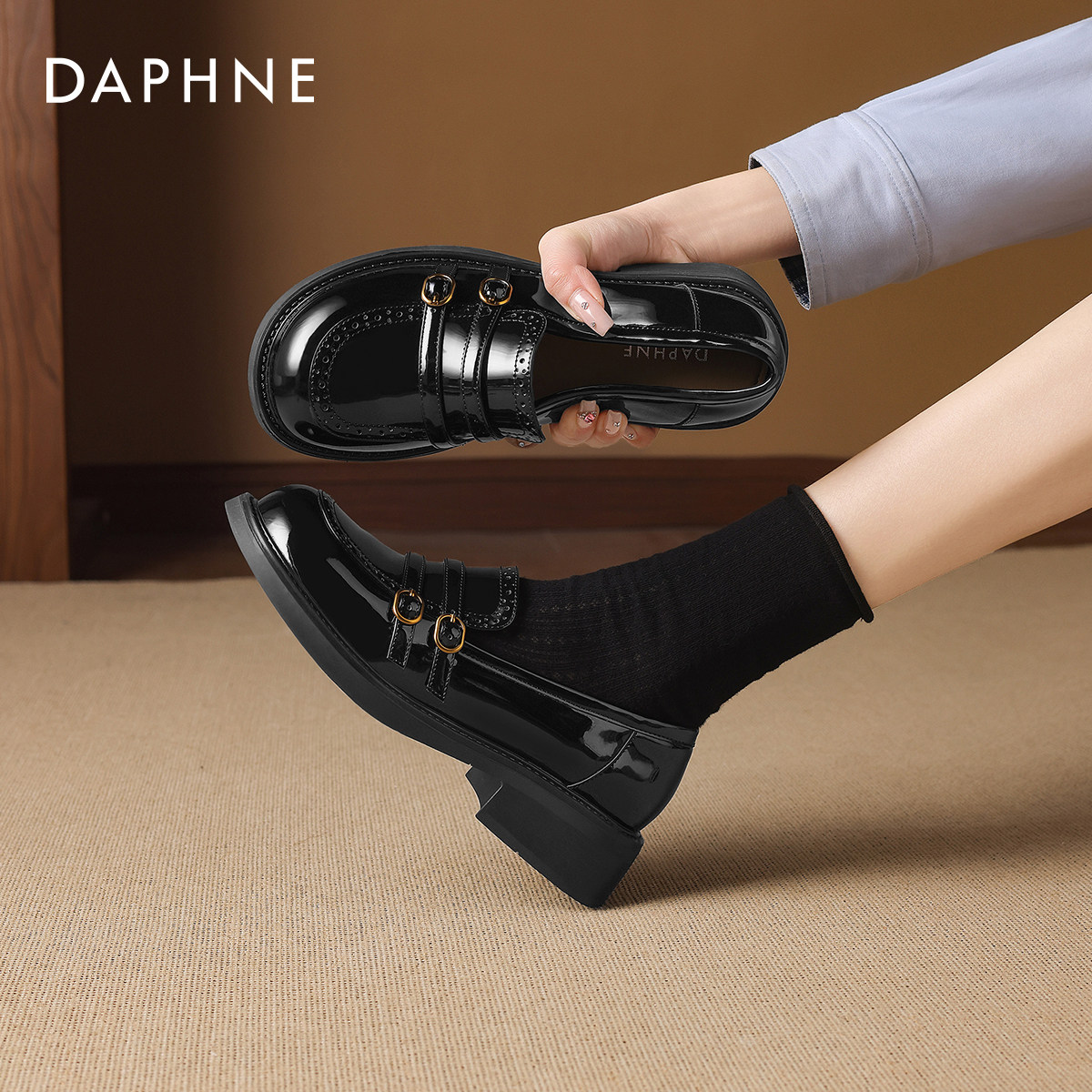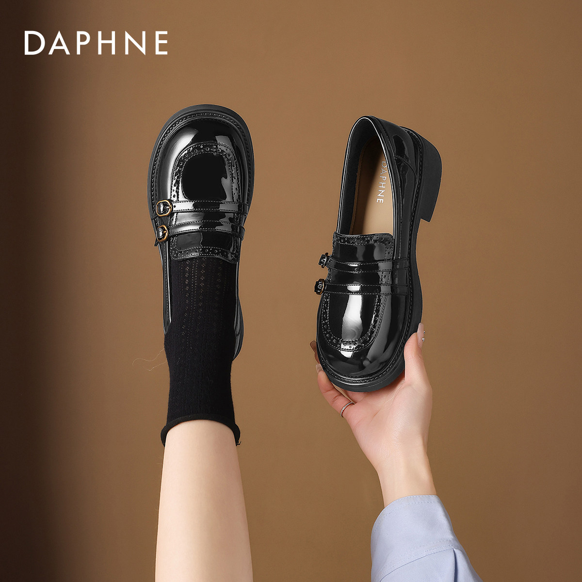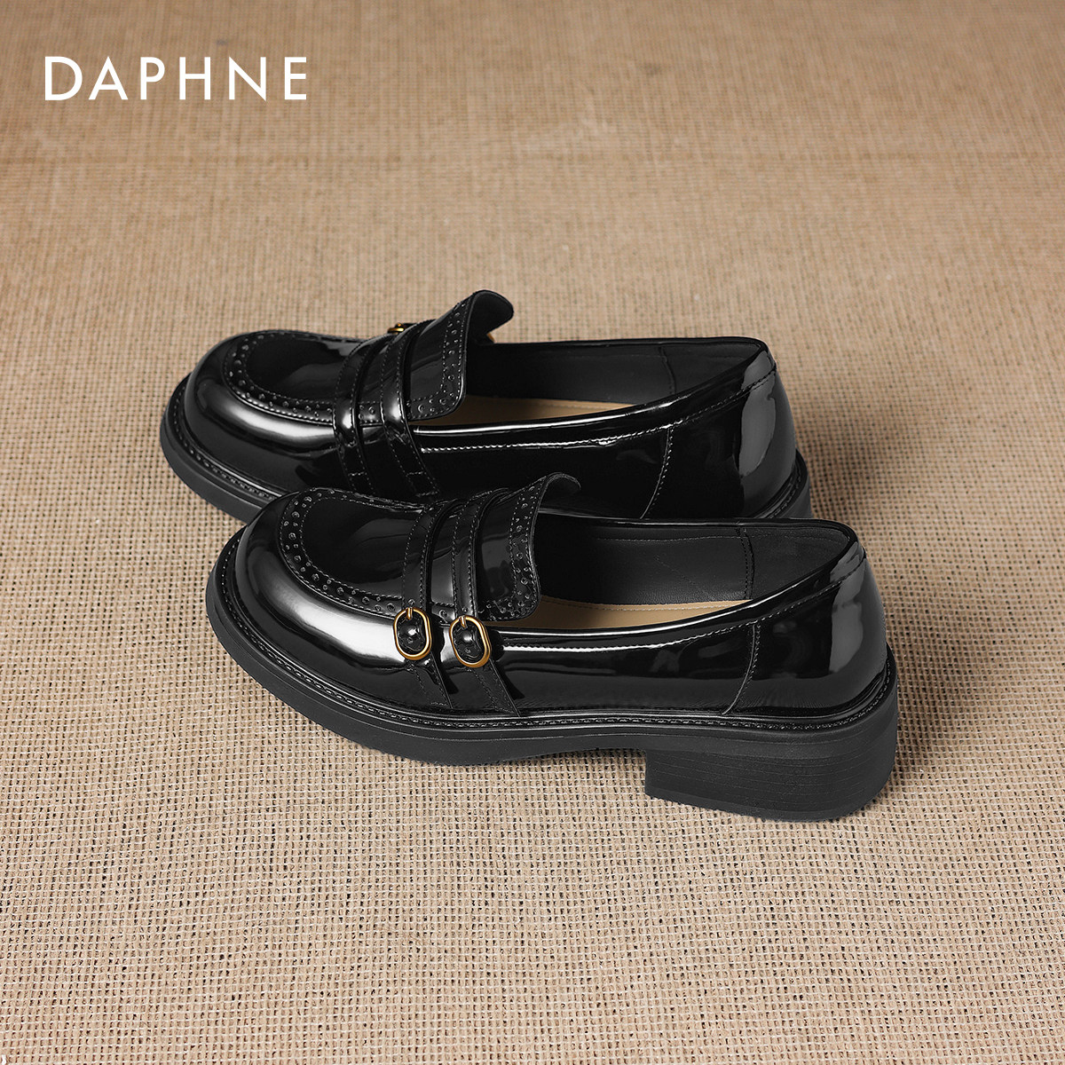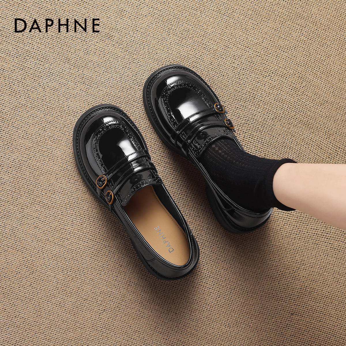 达芙妮漆皮厚底乐福鞋女春季2026新款布洛克小皮鞋英伦风女鞋单鞋