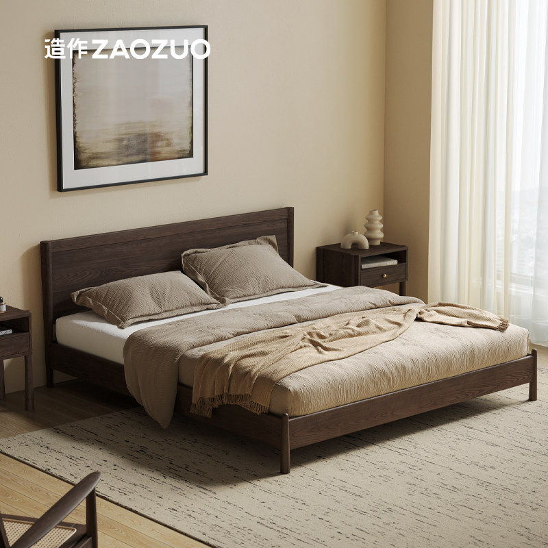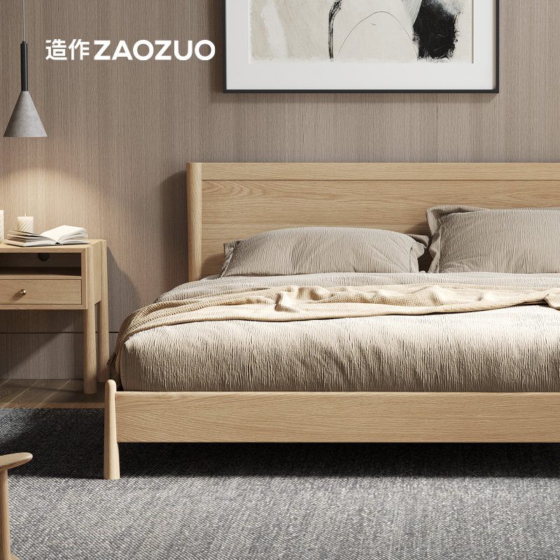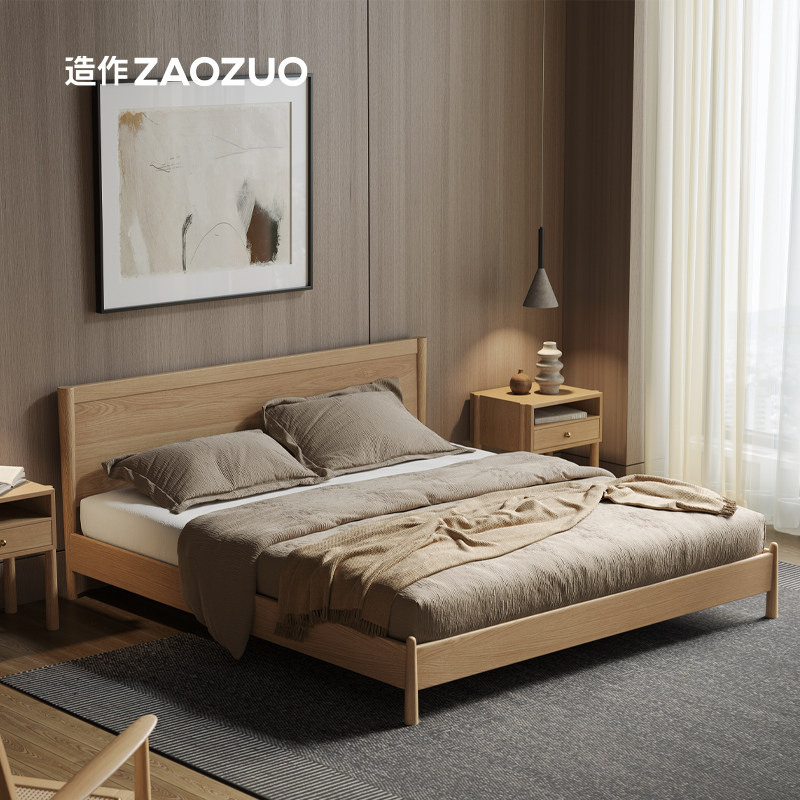 造作圆舞床纯实木白橡实木进口FAS级新中式法式意式侘寂卧室家用