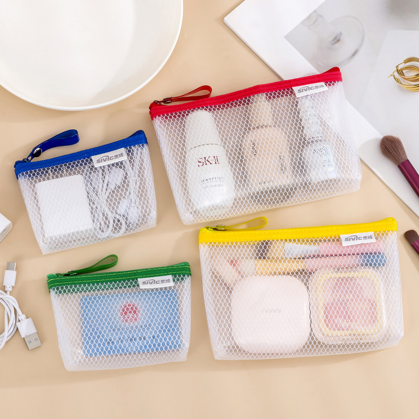 EVA防水网格拉链袋学生零钱收纳包迷你便携证件包多功能小物件化妆品手袋收纳包包内小包数据线收纳便携包