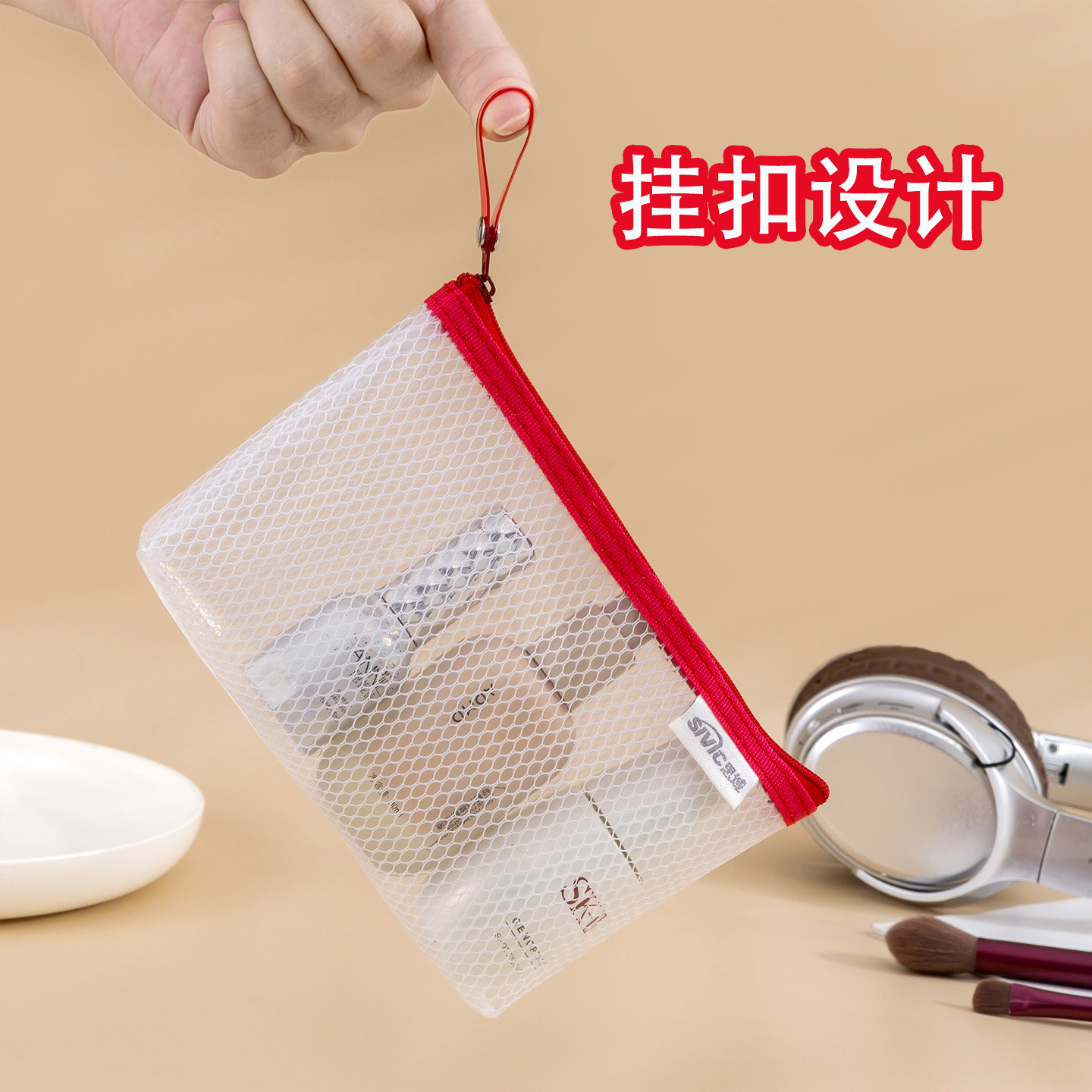 得力网纱拉链袋小号A6迷你透明拉边票据收纳袋考试笔袋加宽三角小巧笔袋考试用简约铅笔袋中高考场文具收纳袋