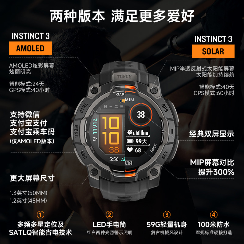 Garmin佳明本能Instinct 3/E太阳能专业户外多功能运动手表男款