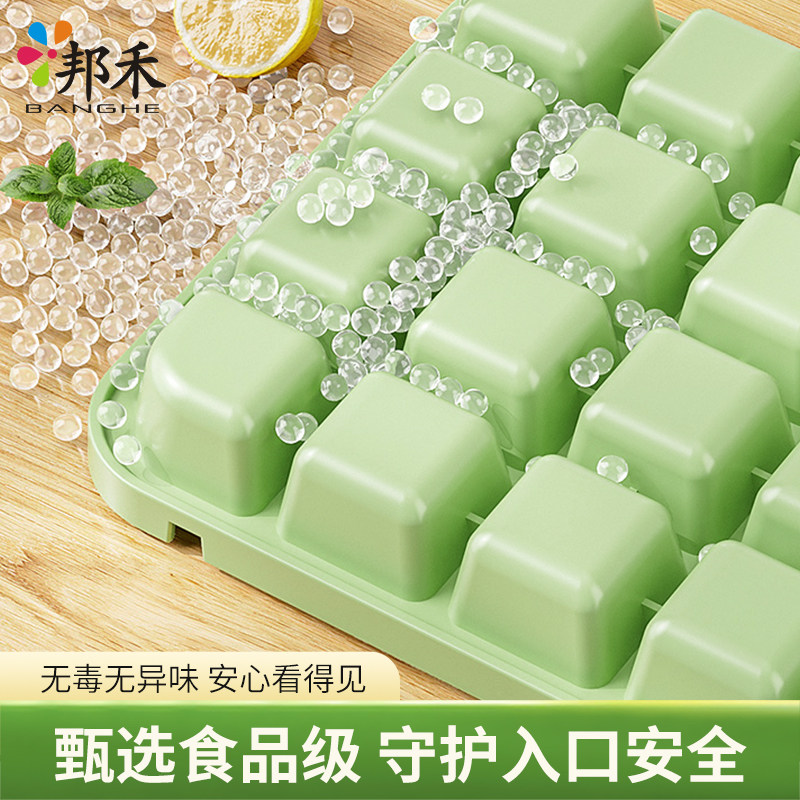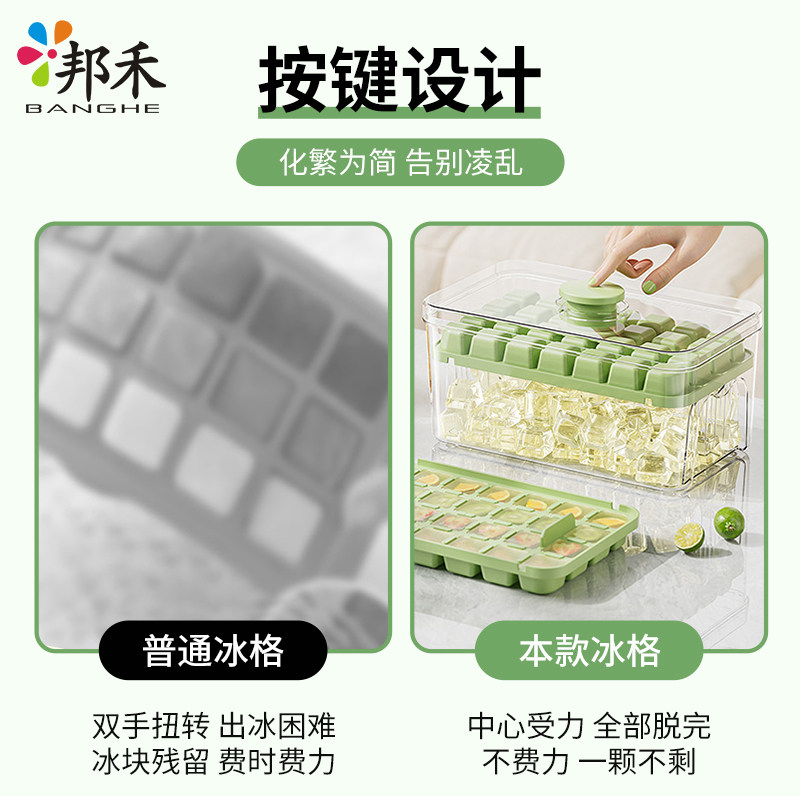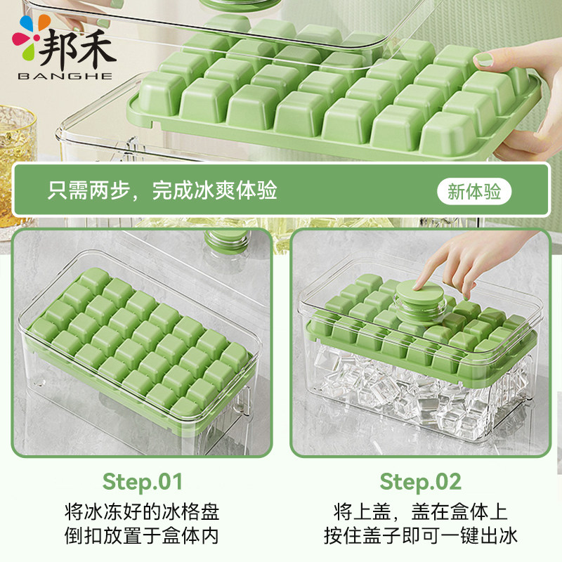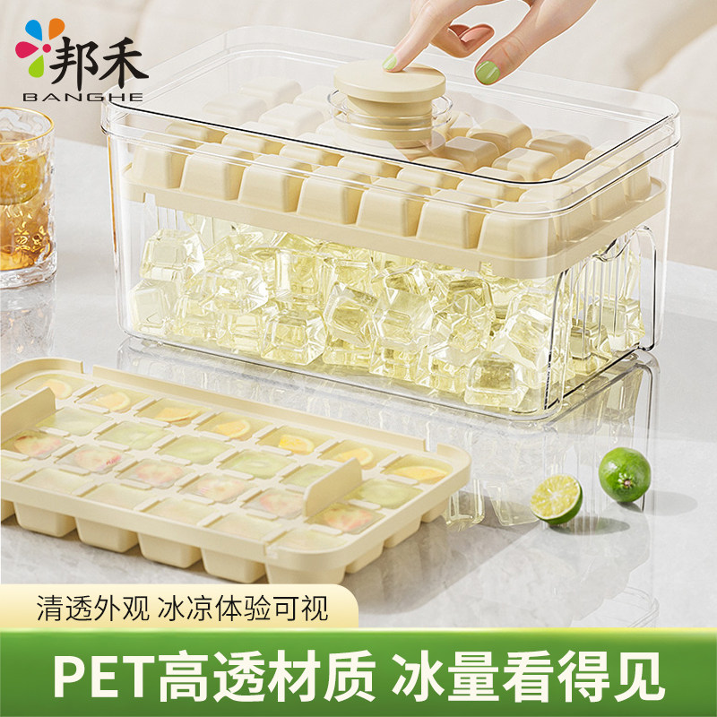按压式制冰盒家用大容量冰块盒食品级PET双层硅胶冰格冰块收纳盒