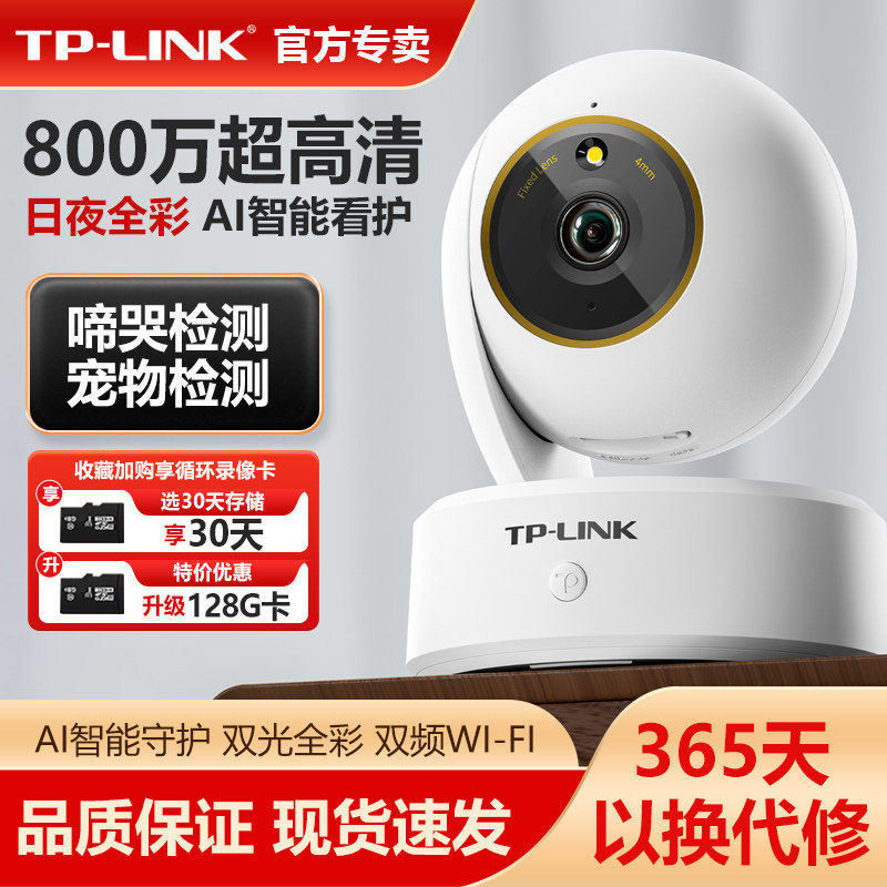 普联TP-LINK无线摄影头800万像素4K极清WIFI6升级360度双云台萌宠检测双向语音全彩夜视监控摄像机TL-IPC48AW
