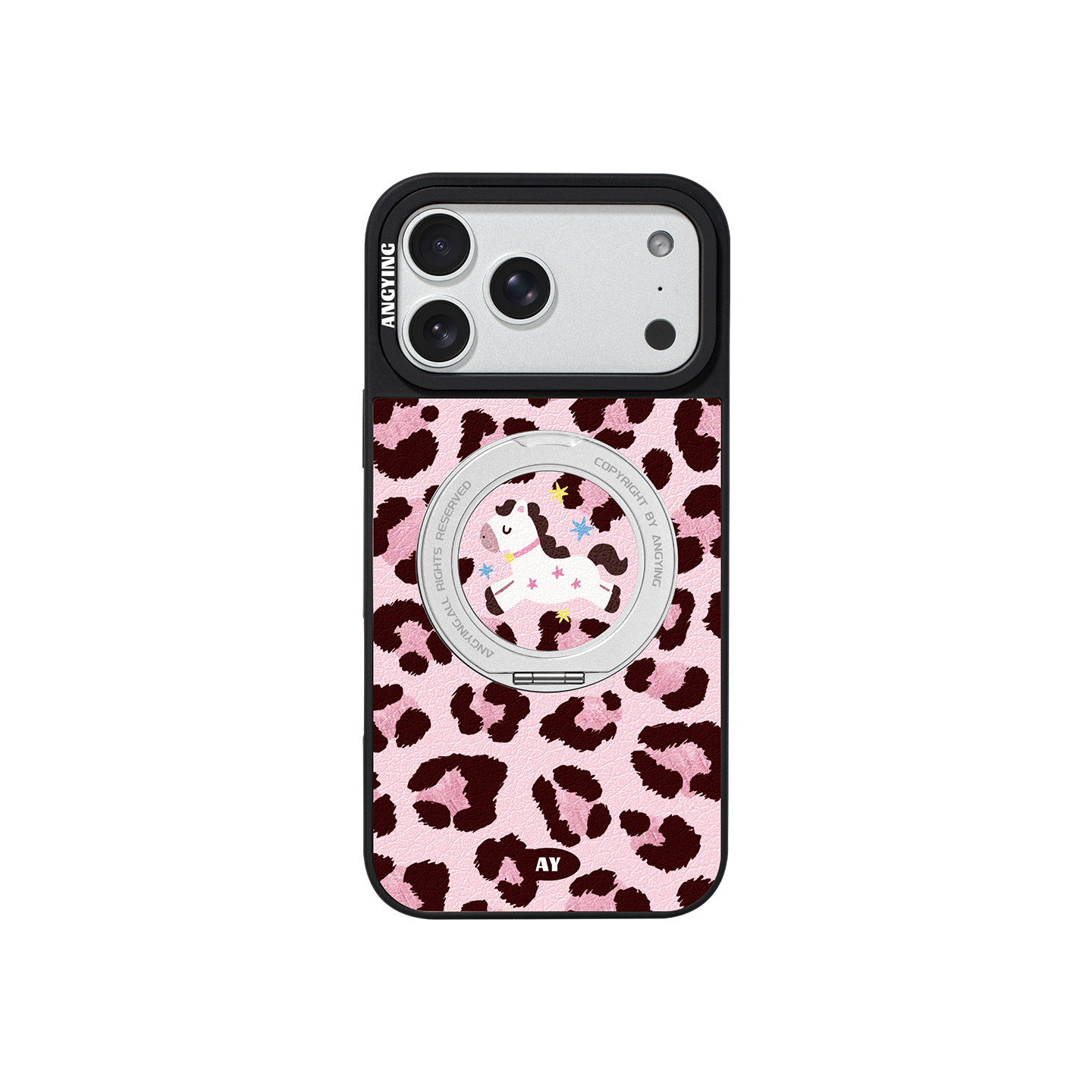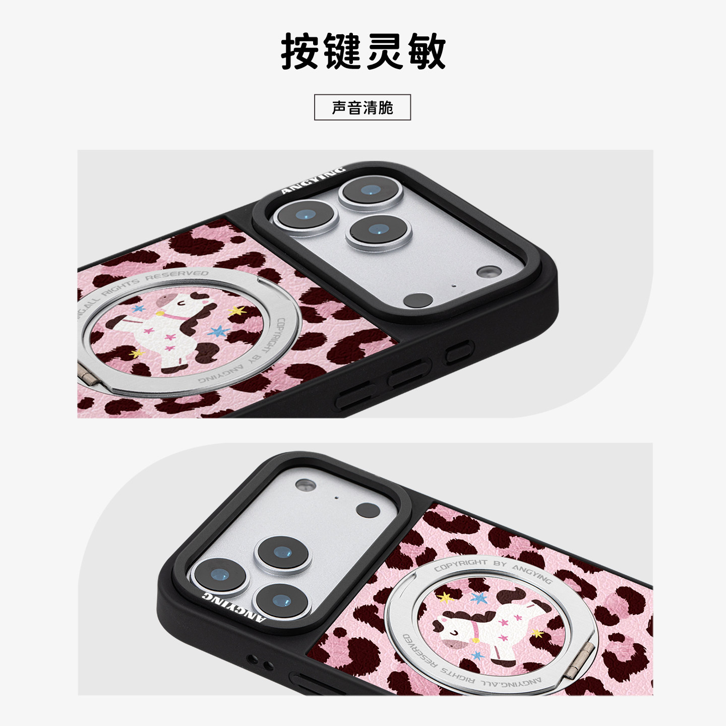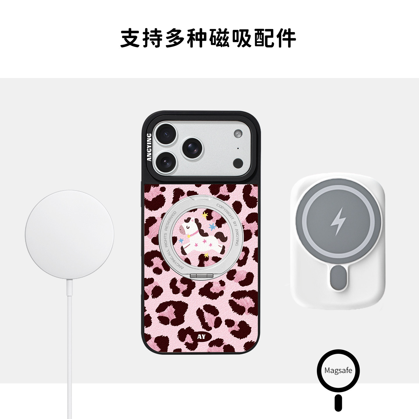 ANGYING × 粉豹纹小马适用苹果17promax手机壳新款iphone16pro磁吸带支架ip15支点Yo6新年红可爱套高级感女