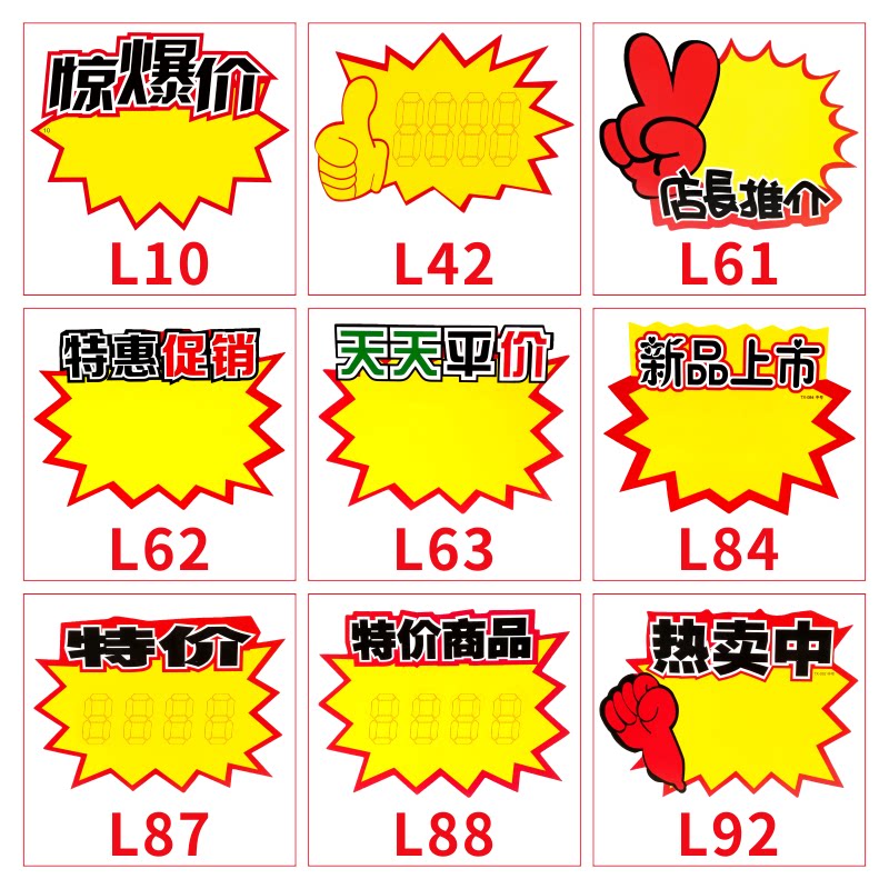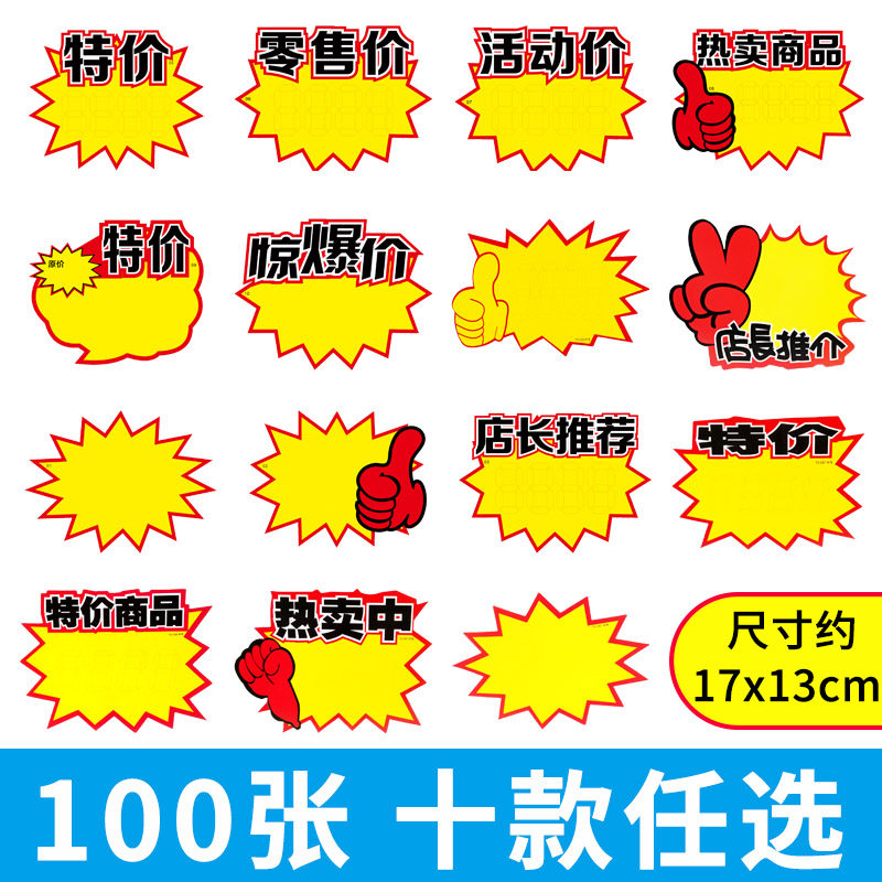 超市价格标签大号POP广告爆炸贴纸超市特价签商品标价牌摆地摊新款创意促销牌价钱展示架服装打折大号爆炸花