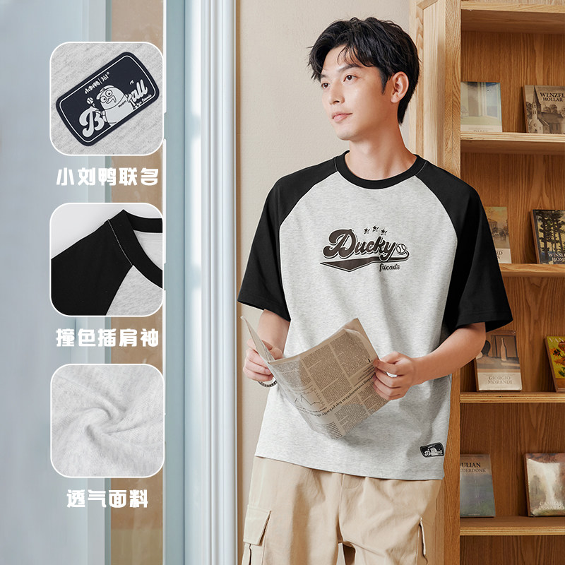 361小刘鸭联名款短袖男2025夏季透气新款宽松百搭圆领运动T恤男装