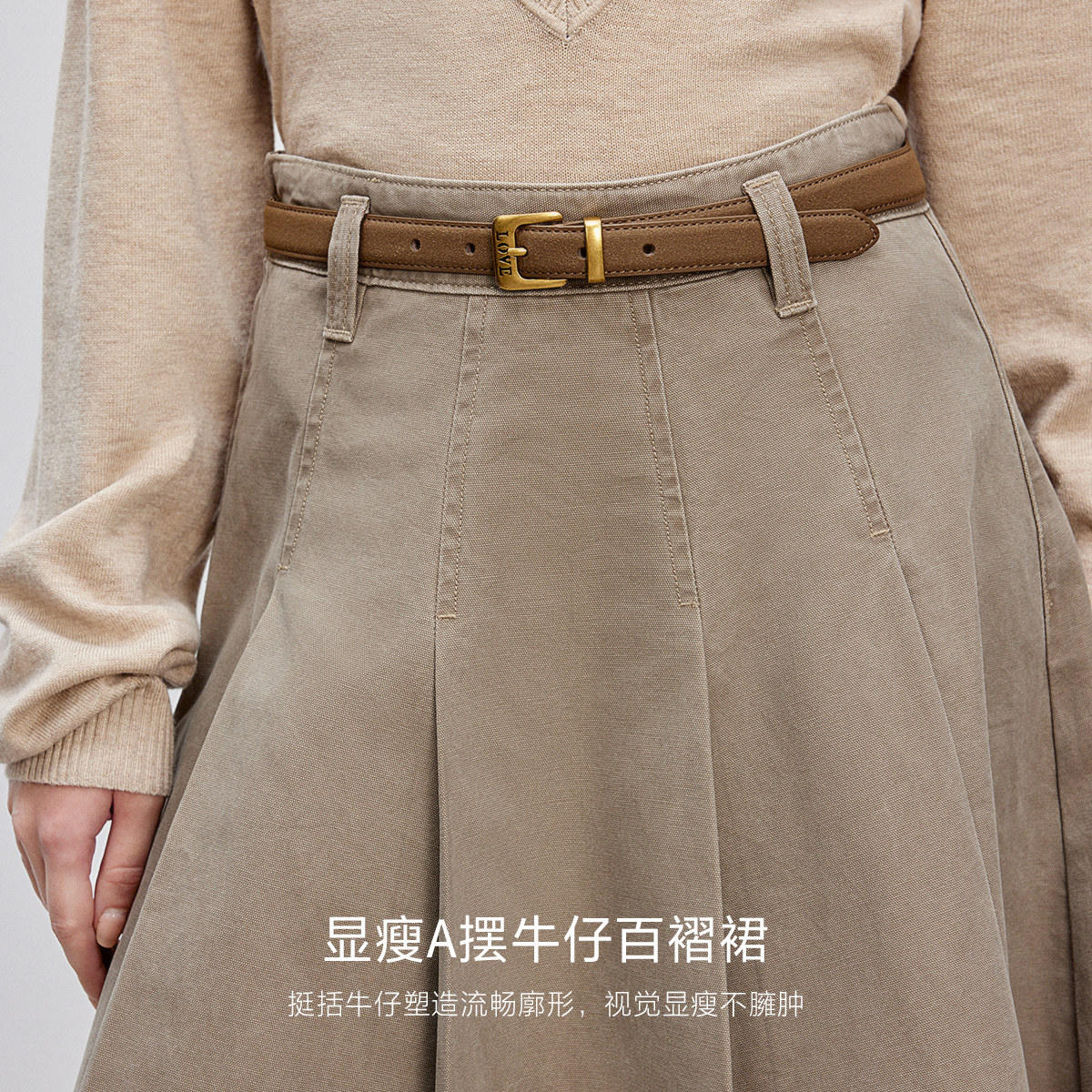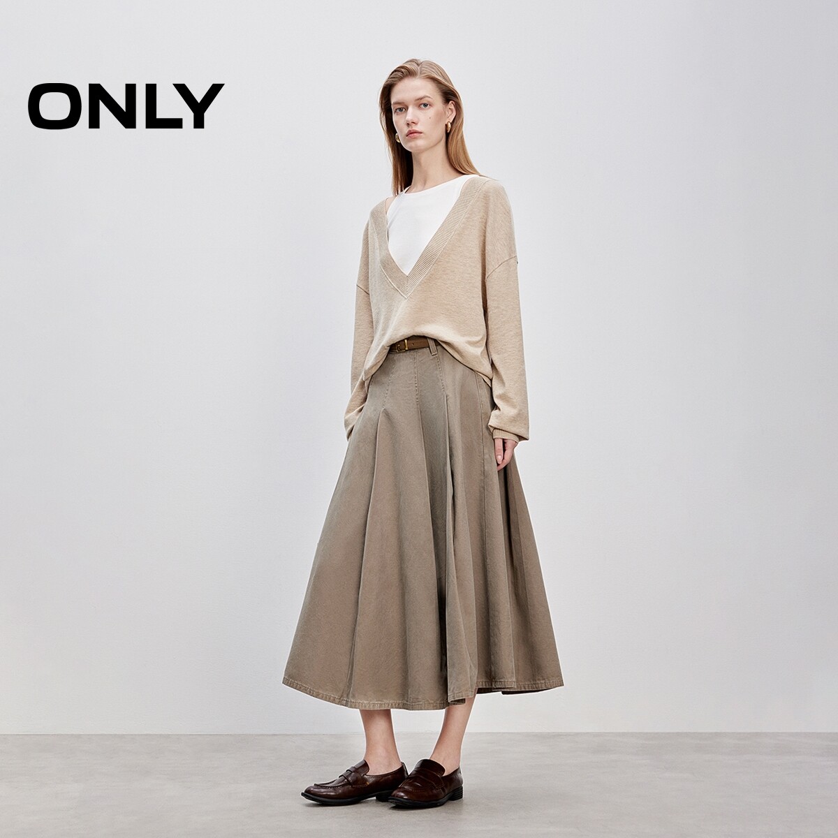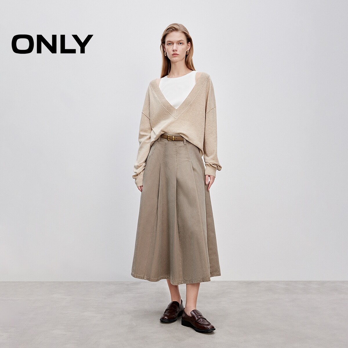 【ONLY奥莱】春款挺括牛仔面料设计高腰A字百褶裙长裙半身裙女