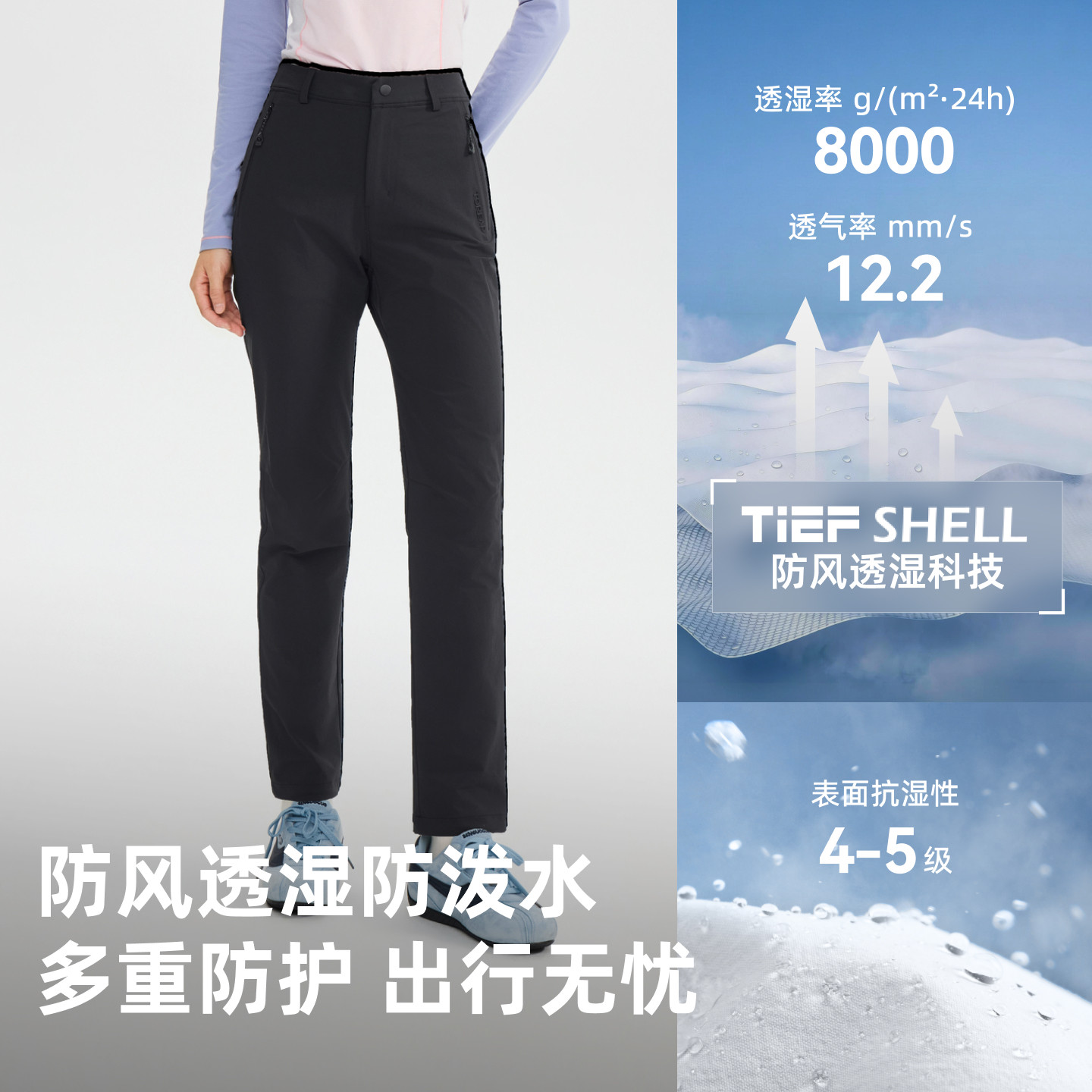 【风盾】伯希和户外软壳裤男徒步登山防风冲锋裤女弹力运动长裤