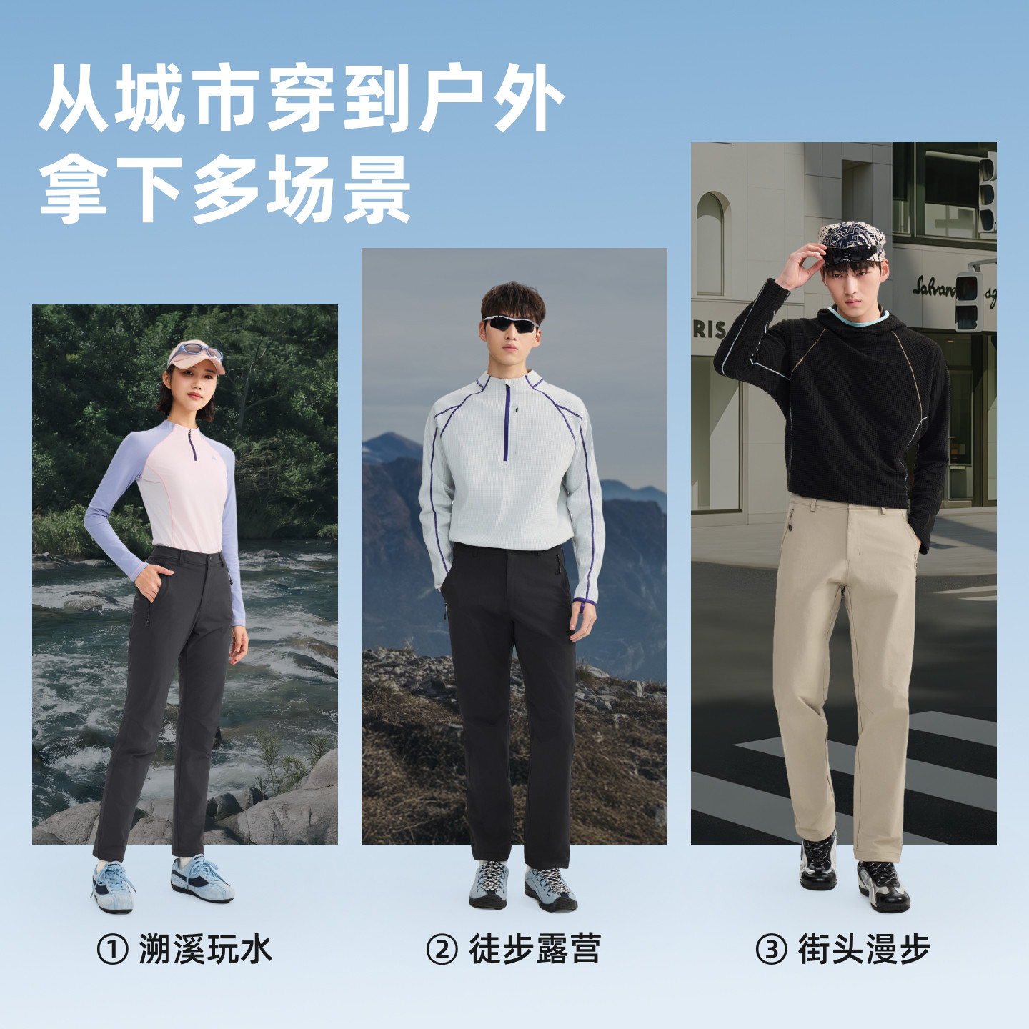 蕉下微喇软壳裤新款户外徒步防风防泼水冲锋裤运动速干登山直筒裤