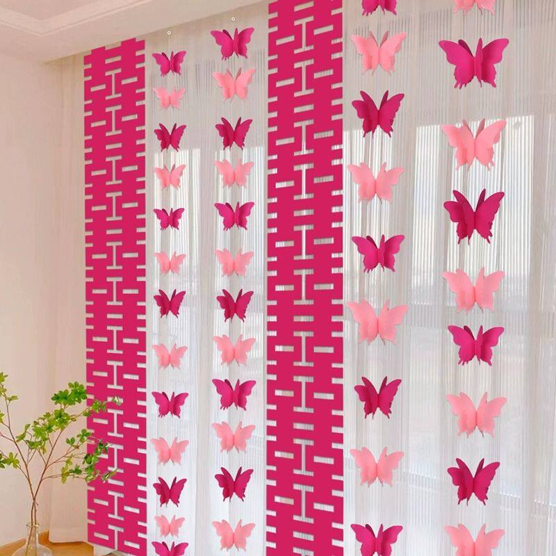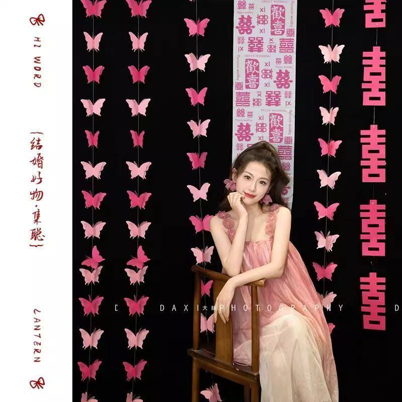 婚房布置套装结婚拍照道具长条喜字客厅卧室窗帘立体蝴蝶吊饰拉花