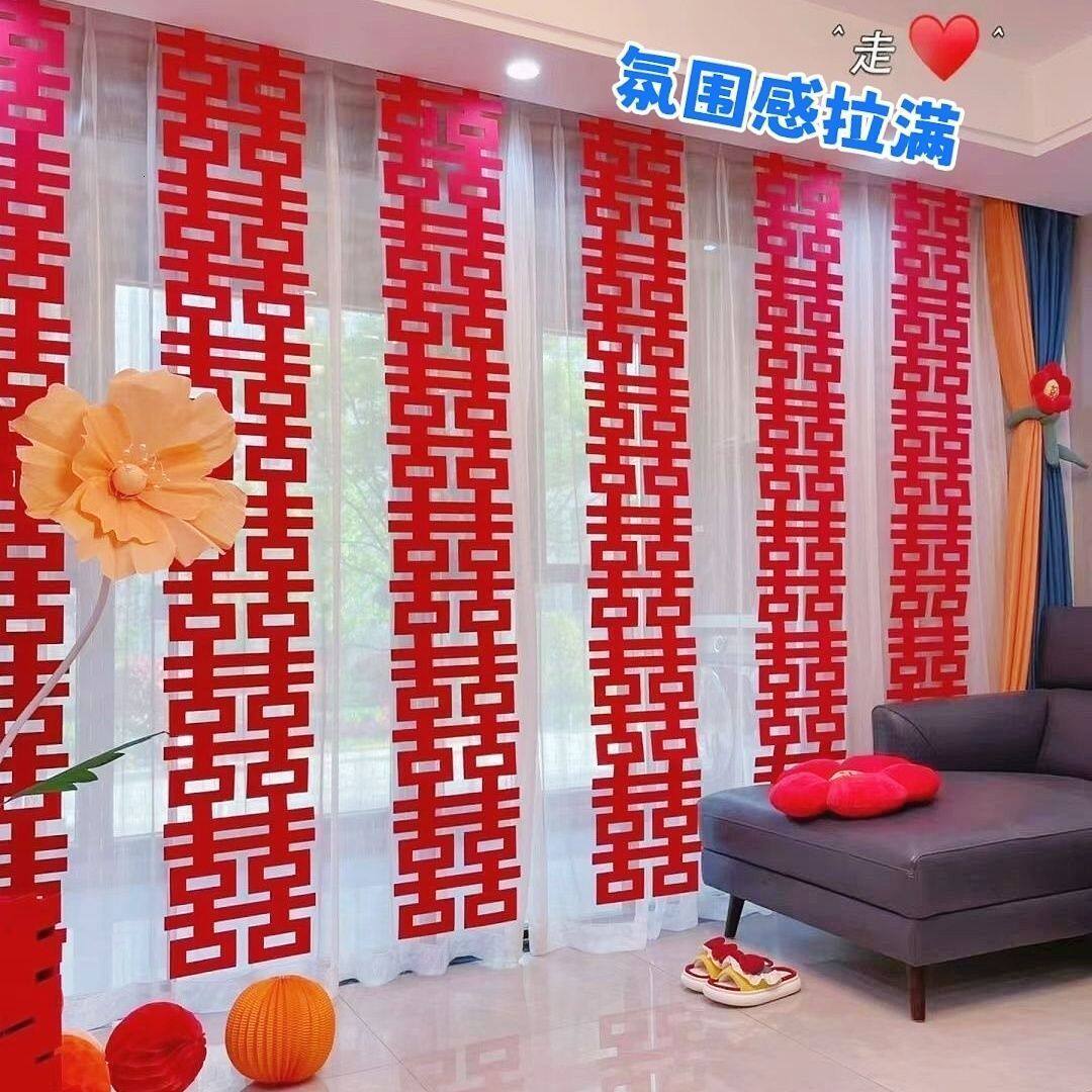 结婚窗帘装饰拉花挂饰婚礼婚房新房布置男方女方卧室客厅长条喜字
