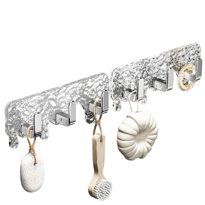 透明连排挂钩六连挂强力粘胶不掉落收纳壁挂无痕免打孔门后粘钩
