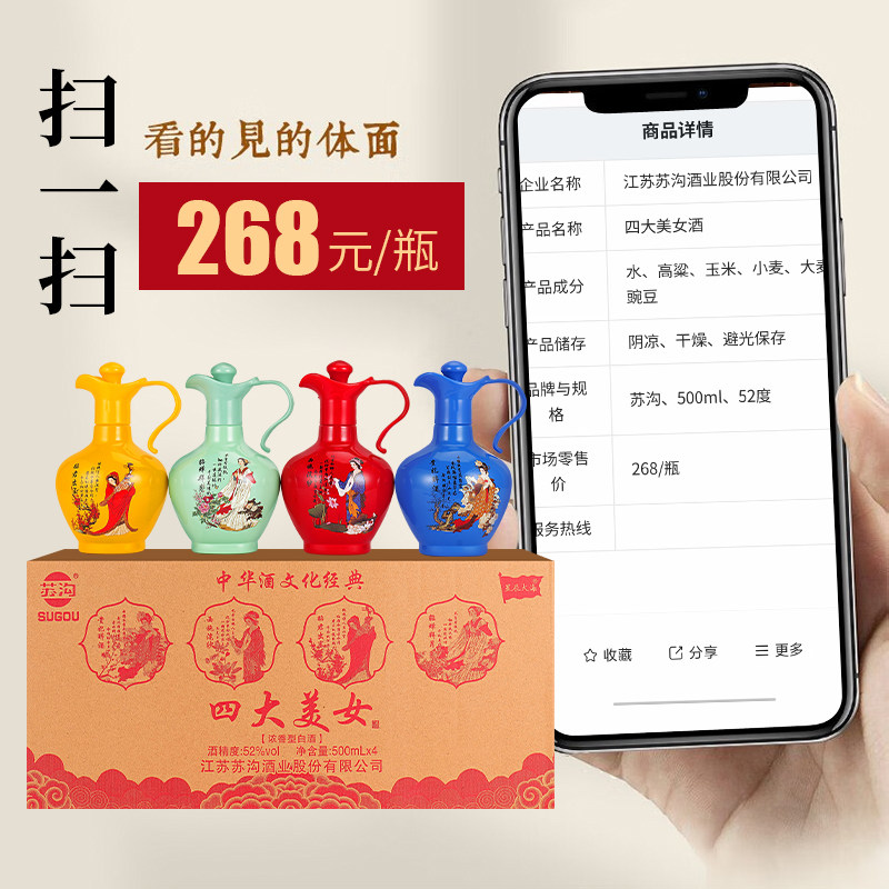 SUGOU苏沟四大美女白酒浓香酒壶礼盒送礼老丈人整箱500ml节日收藏