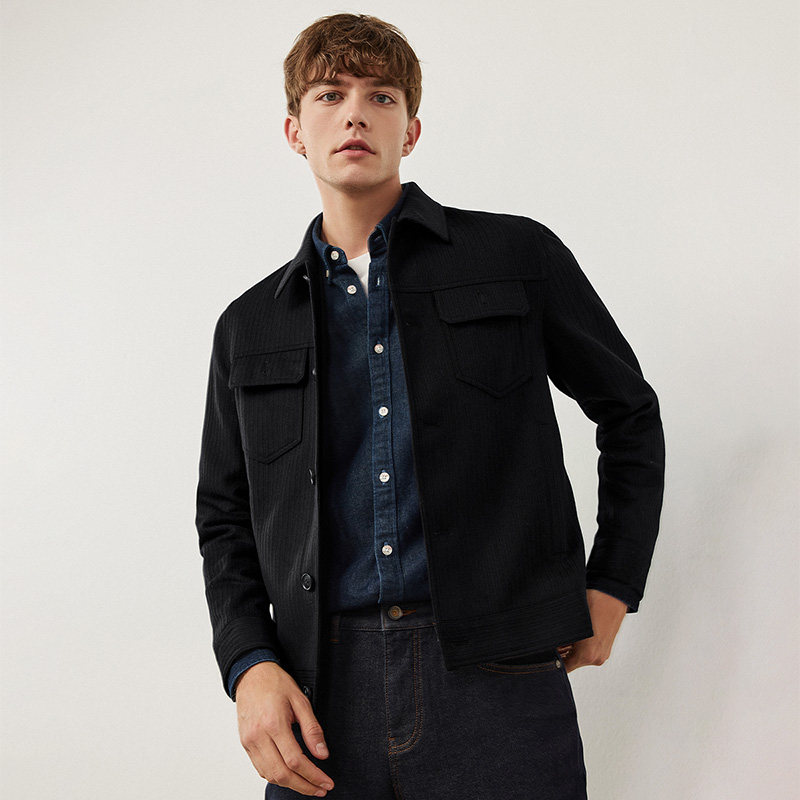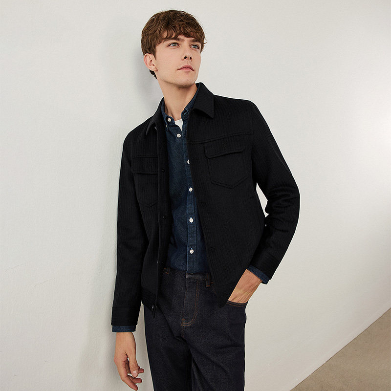[羊毛]Navigare意大利小帆船黑色工装夹克外套男休闲毛呢大衣