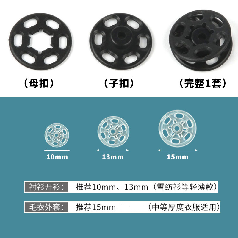 60套暗扣隐形纽扣透明防走光上衣女衬衫黑色子母扣小按扣尼龙摁扣
