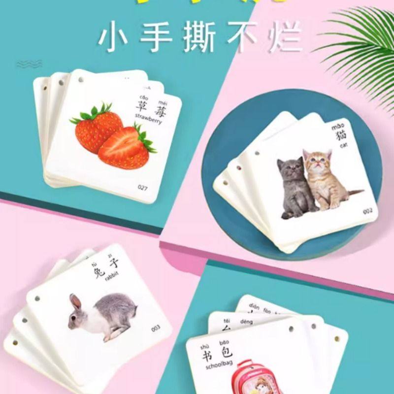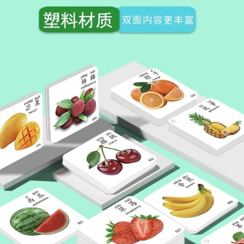 可水洗早教认知卡片闪儿童宝宝看图识物动物水果实物识图启蒙玩具
