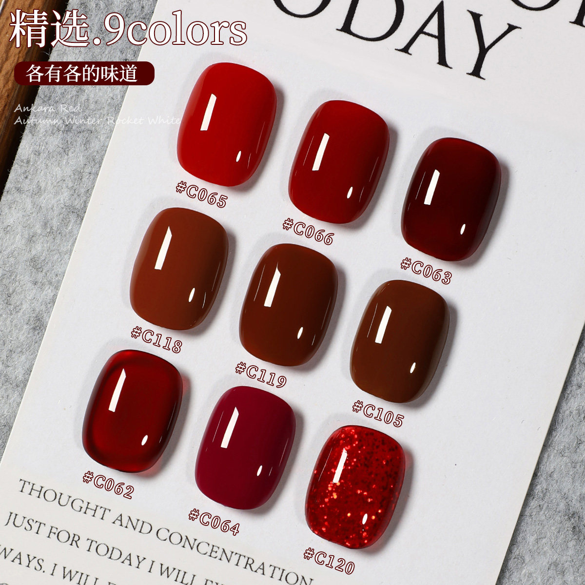 9色纯欲安克拉红色系指甲油胶小套系2025年透亮果冻感美甲店专用