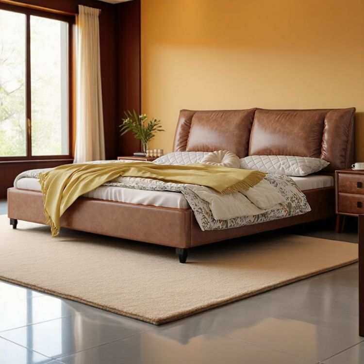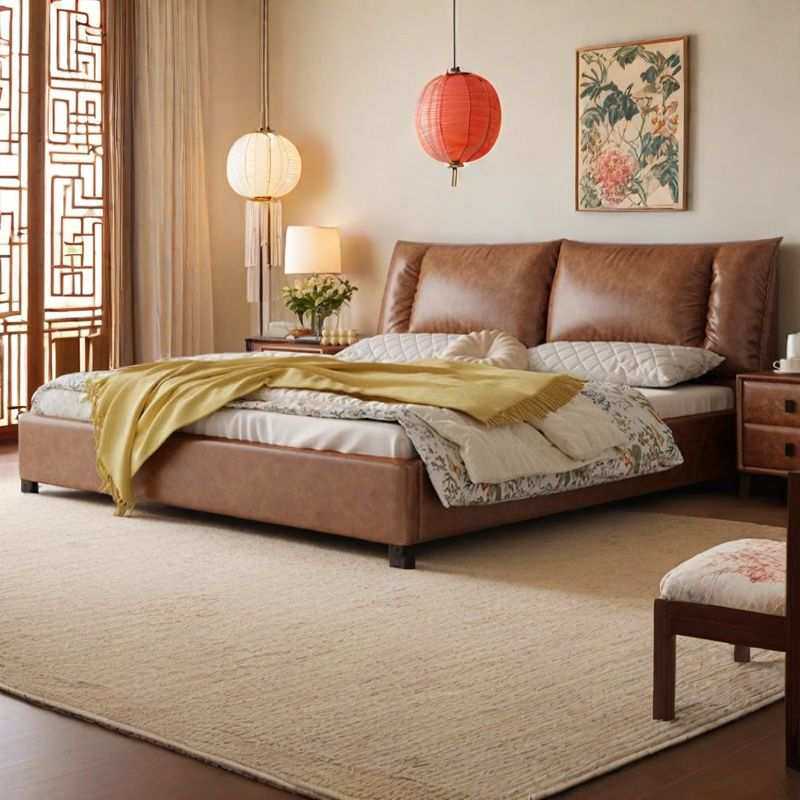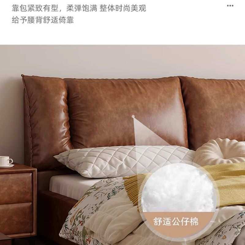 中古风软包真皮床主卧室高端大气双人床复古头层油蜡皮艺储物婚床