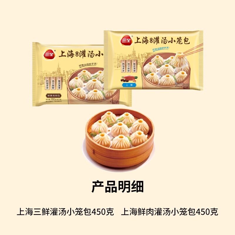 三全灌汤包上海鲜肉三鲜风味早餐灌汤小笼包方便包子面点速冻猪肉