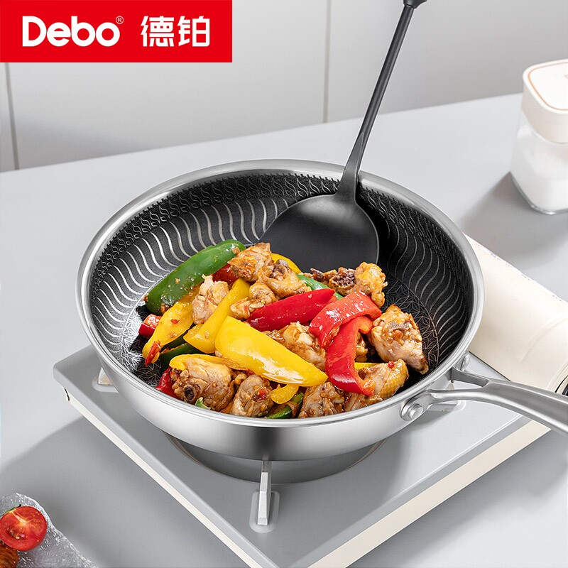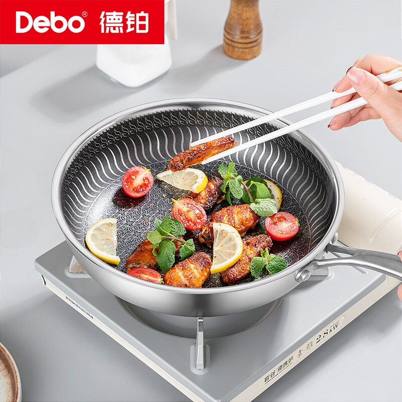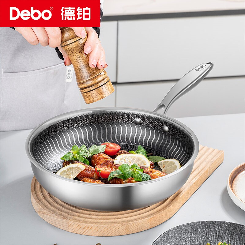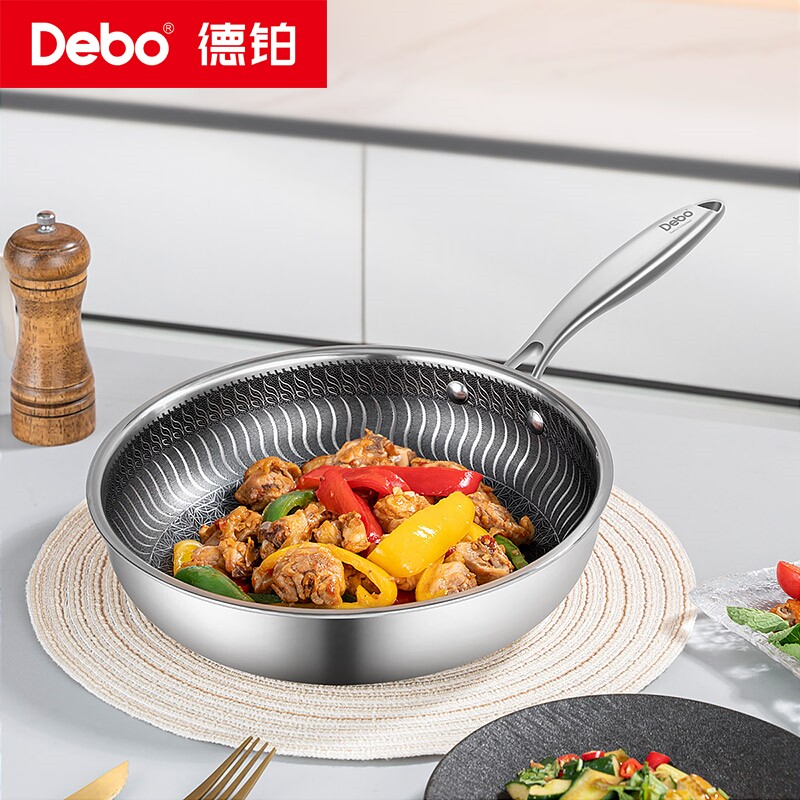 Debo德铂304不锈钢平底锅不粘锅家用煎锅早餐煎蛋饼煎牛排锅菜锅