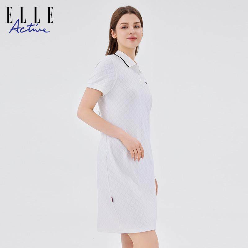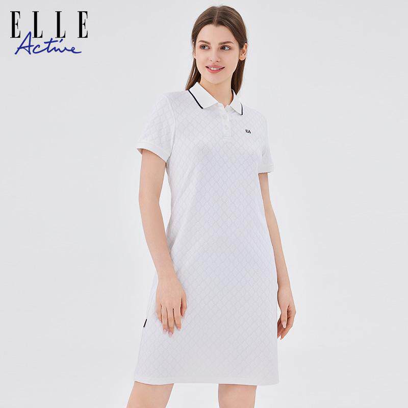 ELLE Active气质白色连衣裙女2025新款休闲运动polo裙收腰显瘦
