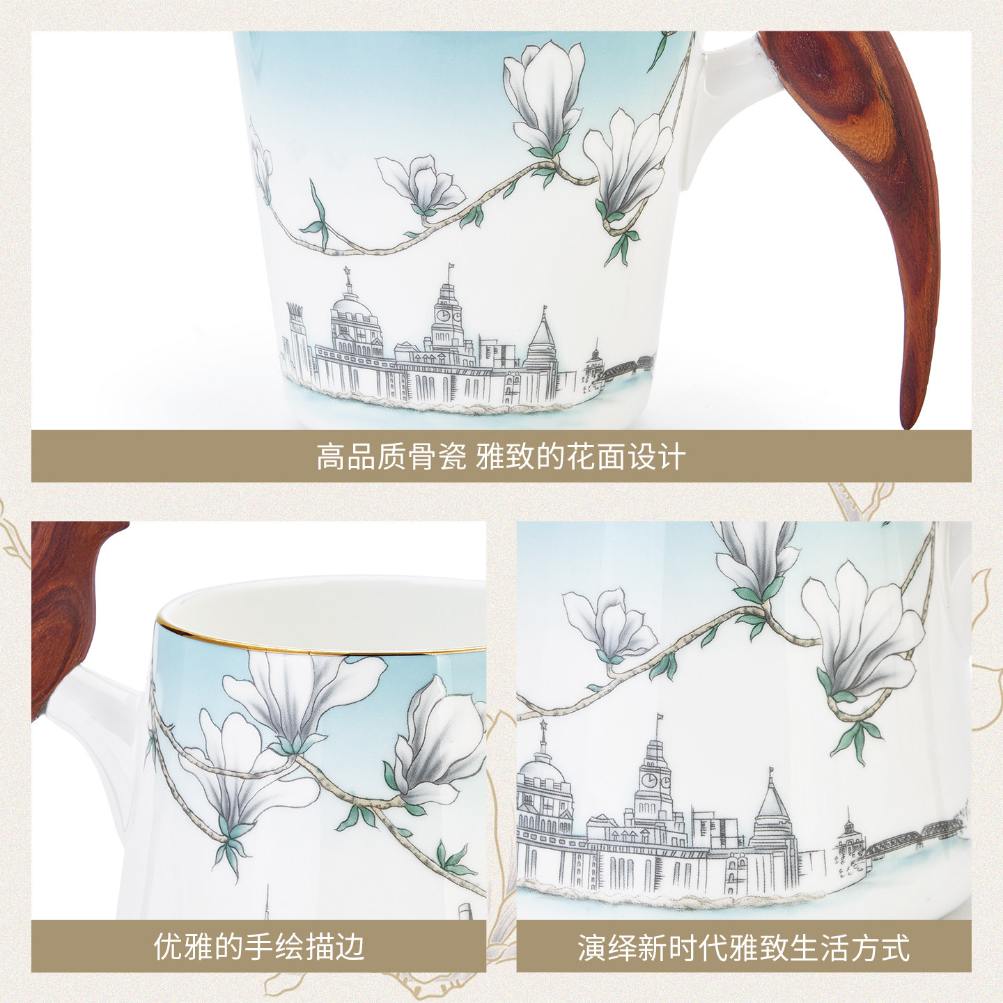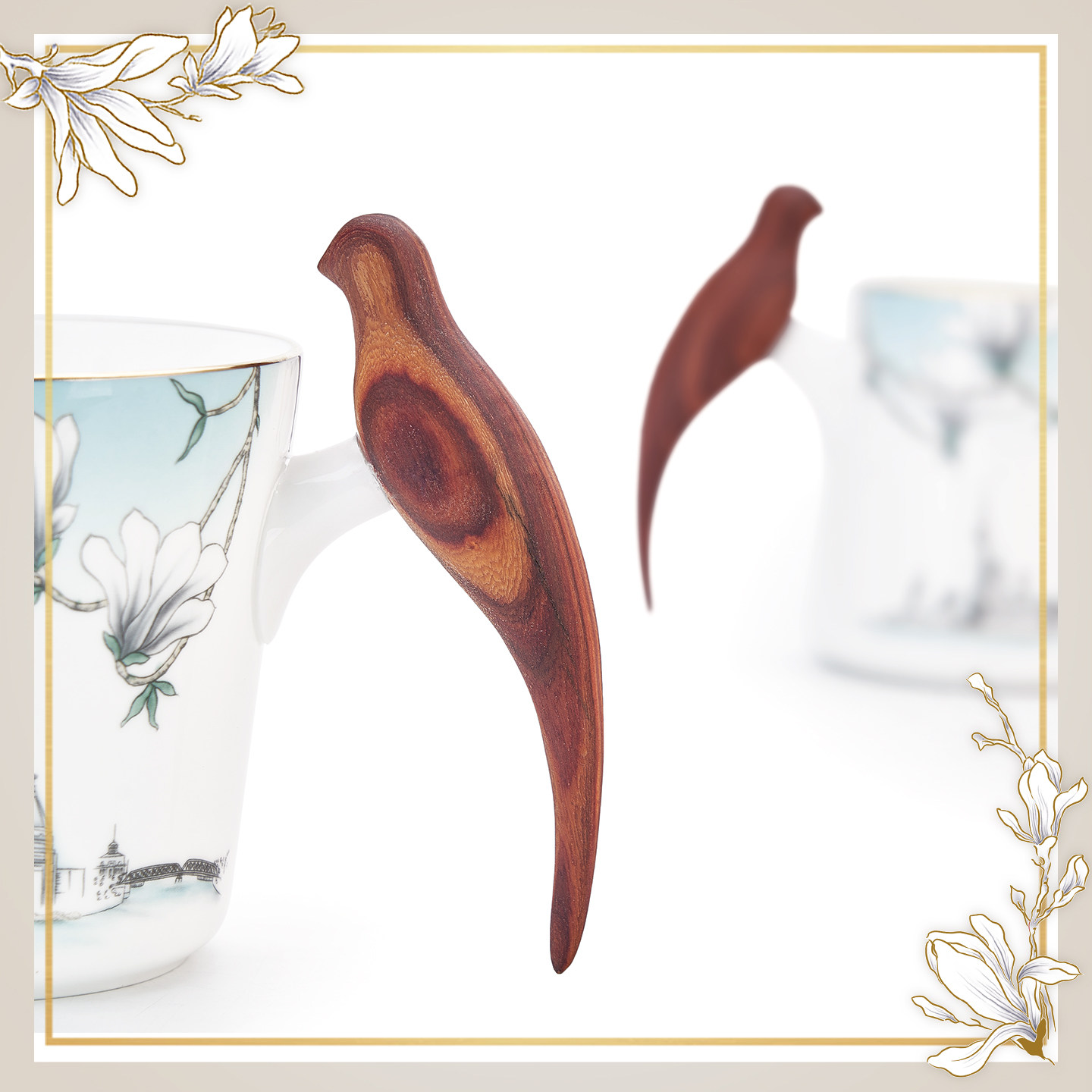 玛戈隆特 幸福小鸟对杯马克杯 木把手家用骨瓷情侣对杯礼盒包装