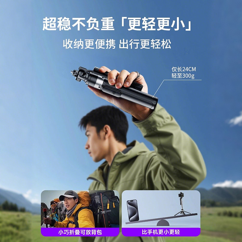 适用DJI大疆pocket3 Osmo 360三脚架手持自拍杆可伸缩延长落地支架口袋云台运动相机手机桌面迷你旅游便携