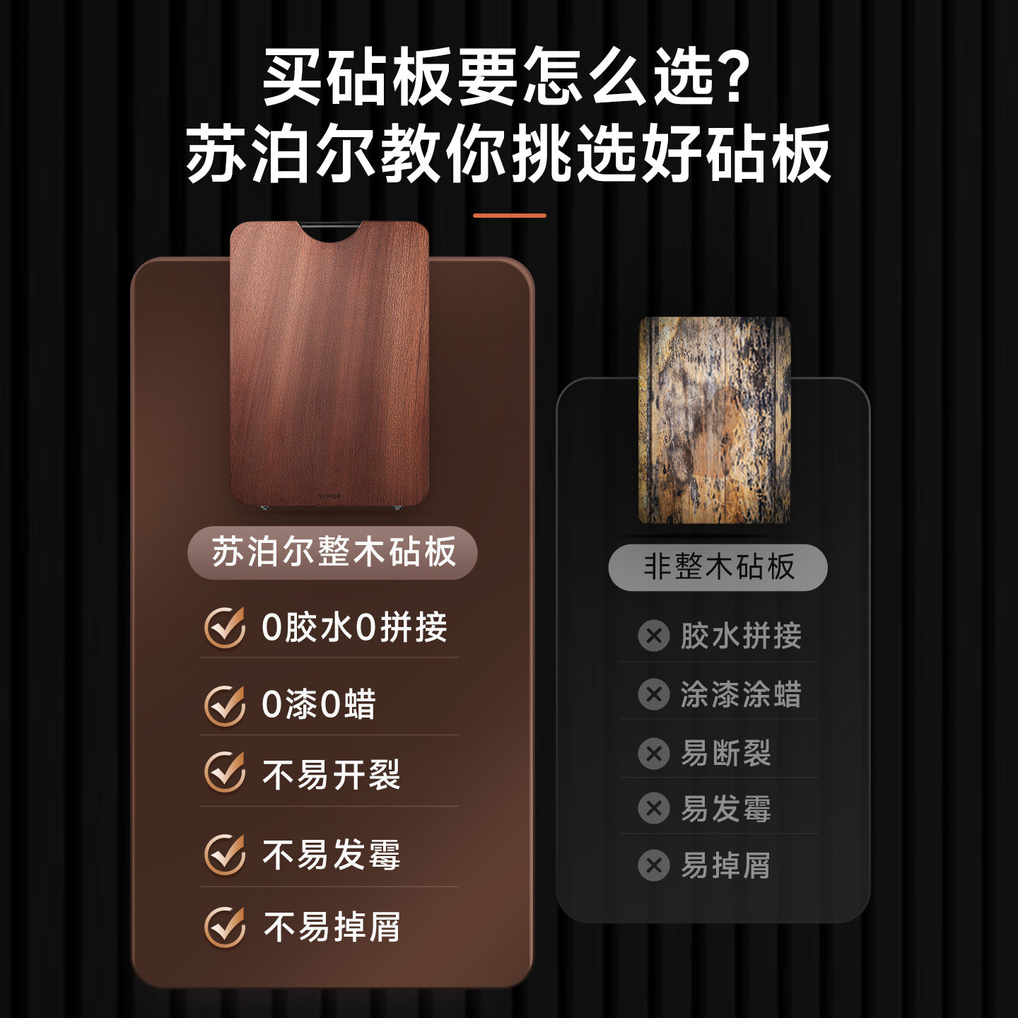 苏泊尔乌檀木菜板抗菌防霉家用实木砧板厨房专用双面切菜案板粘板